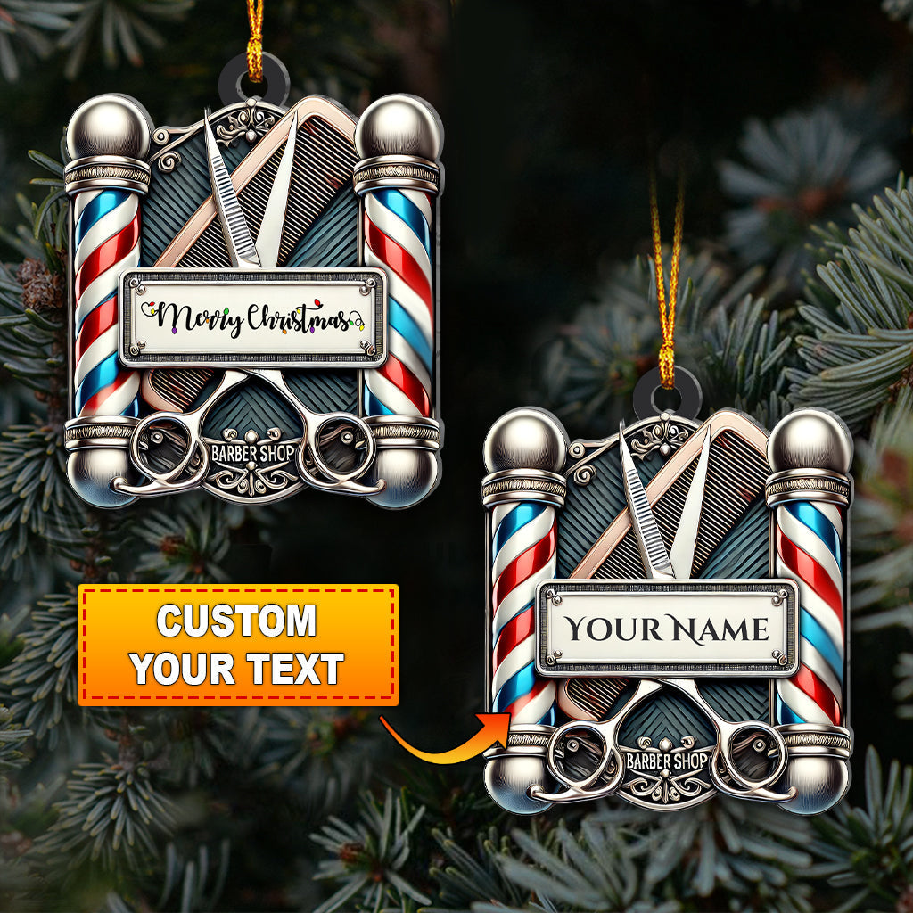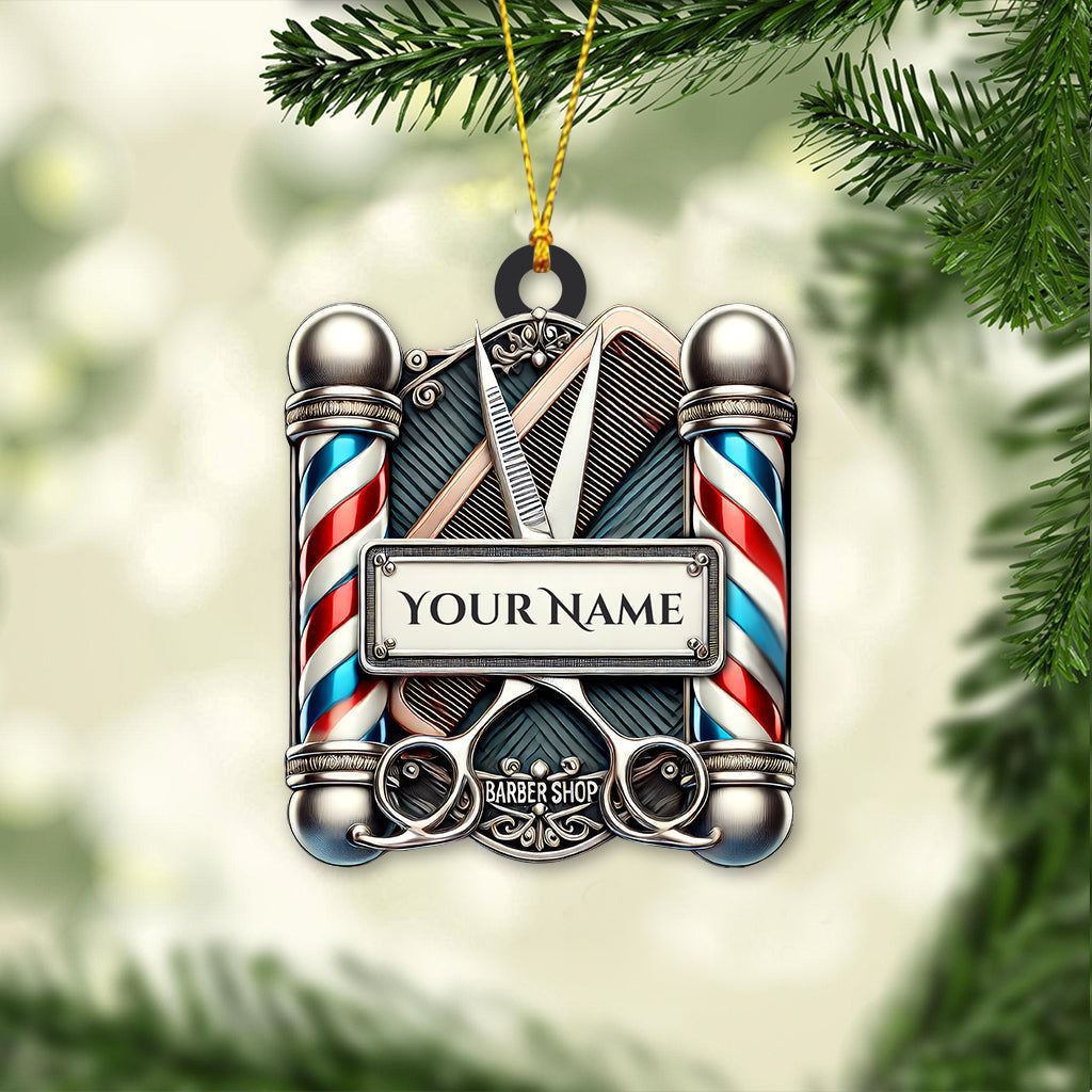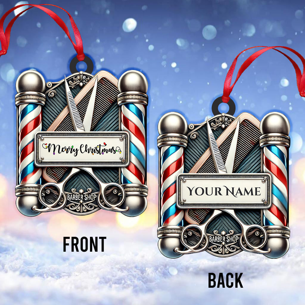 Christmas Gift, Custom Ornament, Custom Name Barber Ornament, Barber Shop Decoration