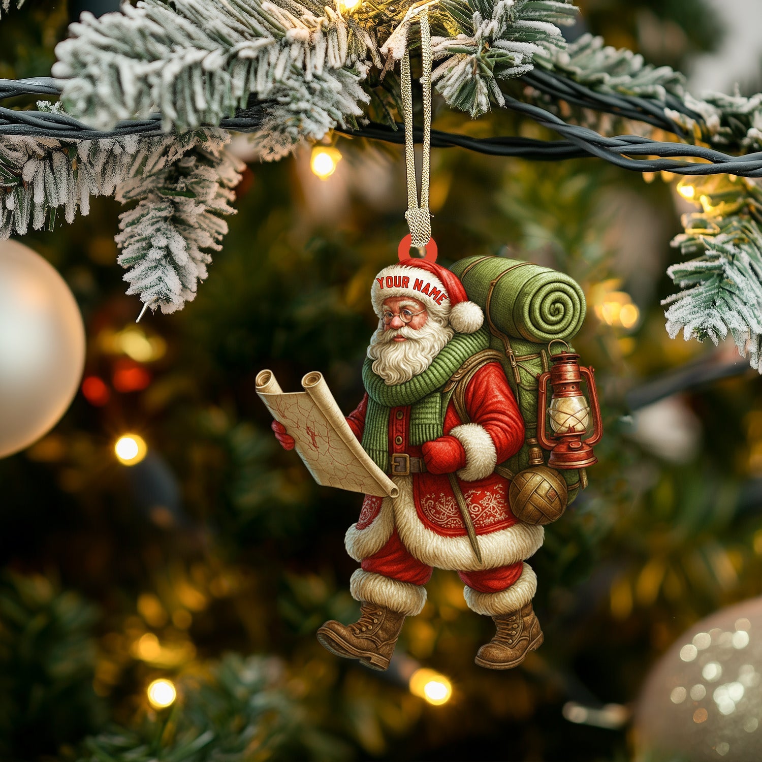 Christmas Hiking Santa, Home Decor, Christmas Ornament, Personalized Ornament