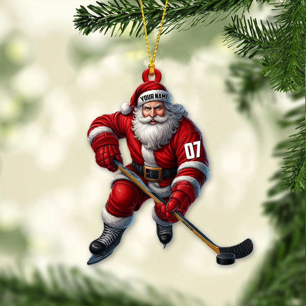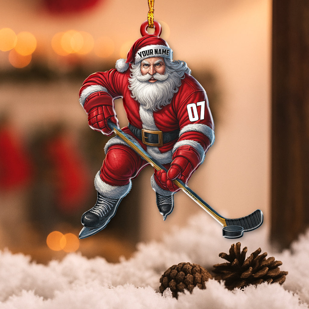 Christmas Hockey Santa, Home Decor, Christmas Ornament, Personalized Ornament