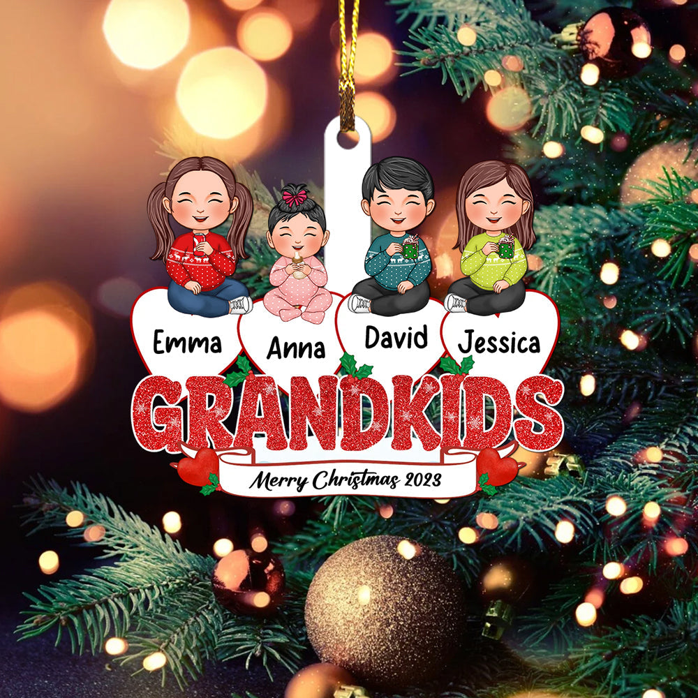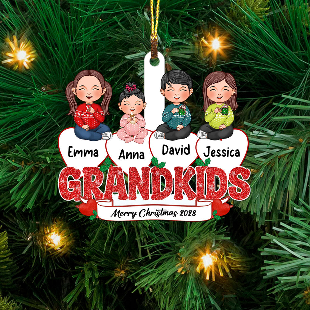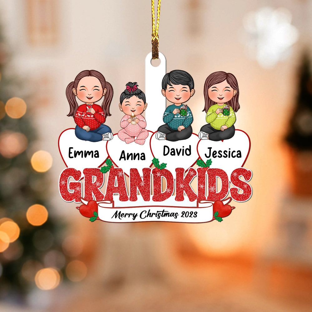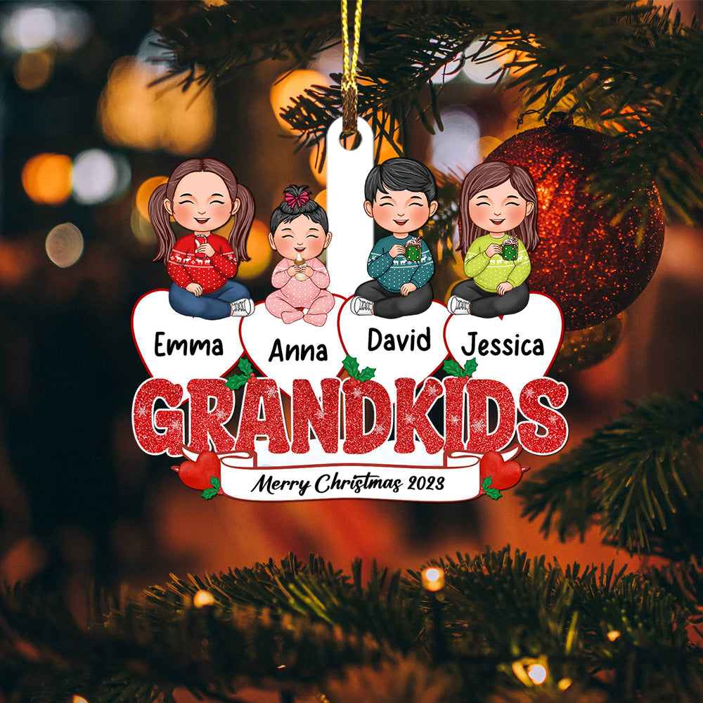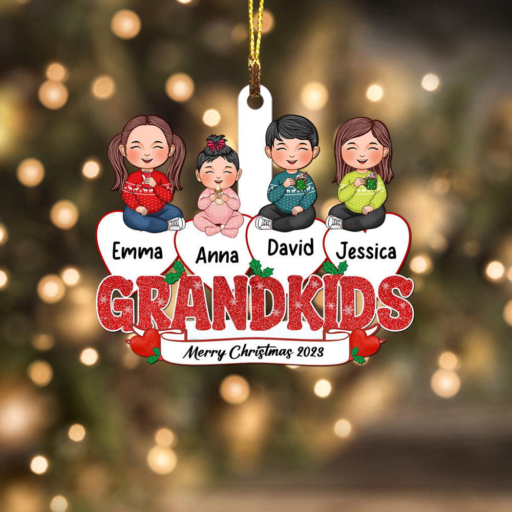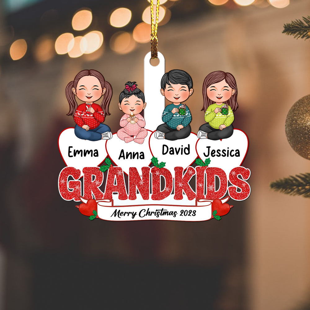 Christmas Kids On Snow Heart - Custom Appearances And Names, Personalized Acrylic Ornament - Gift For Christmas