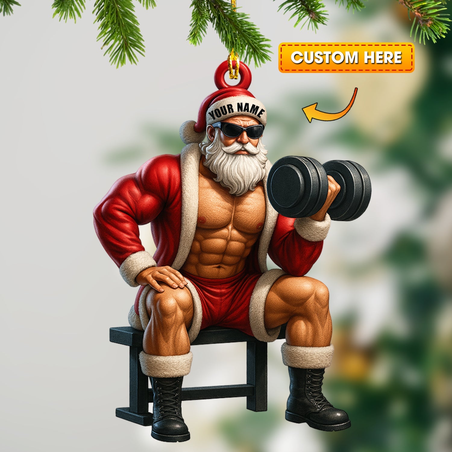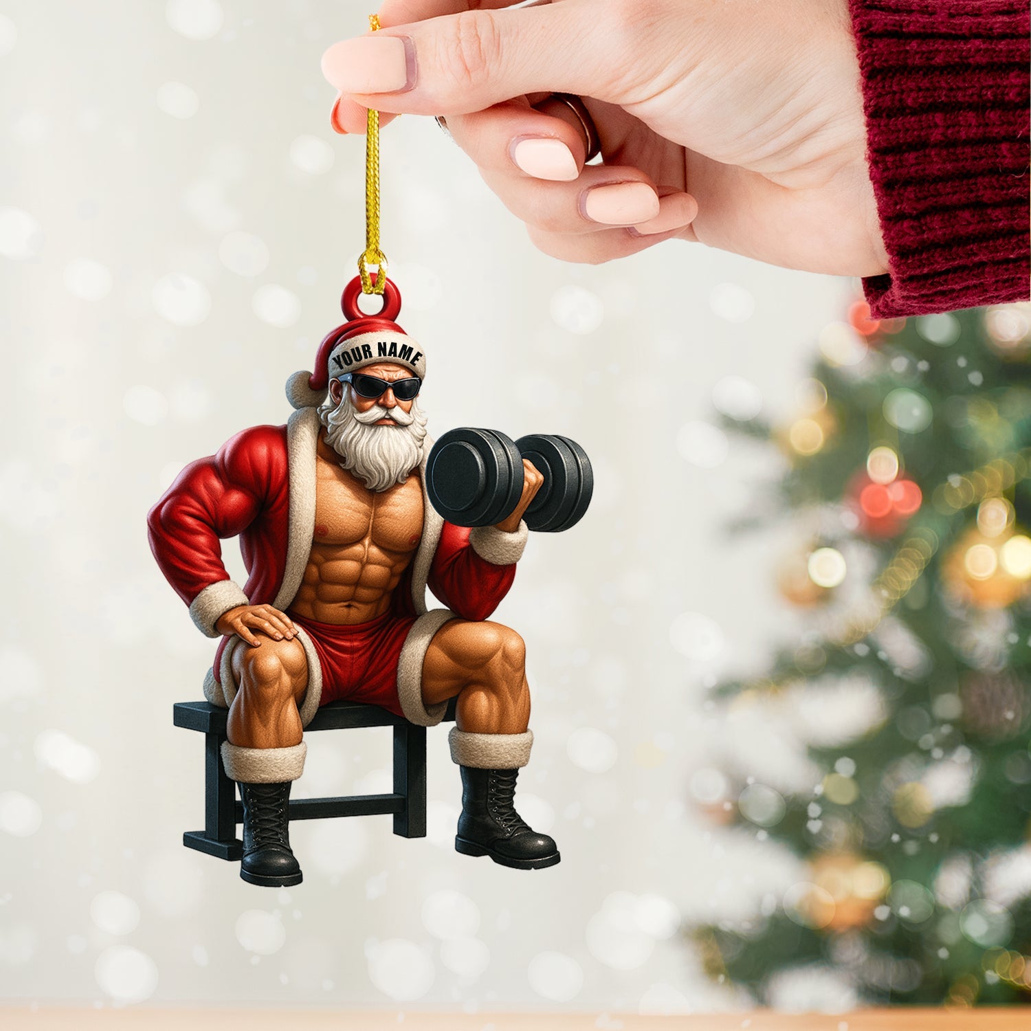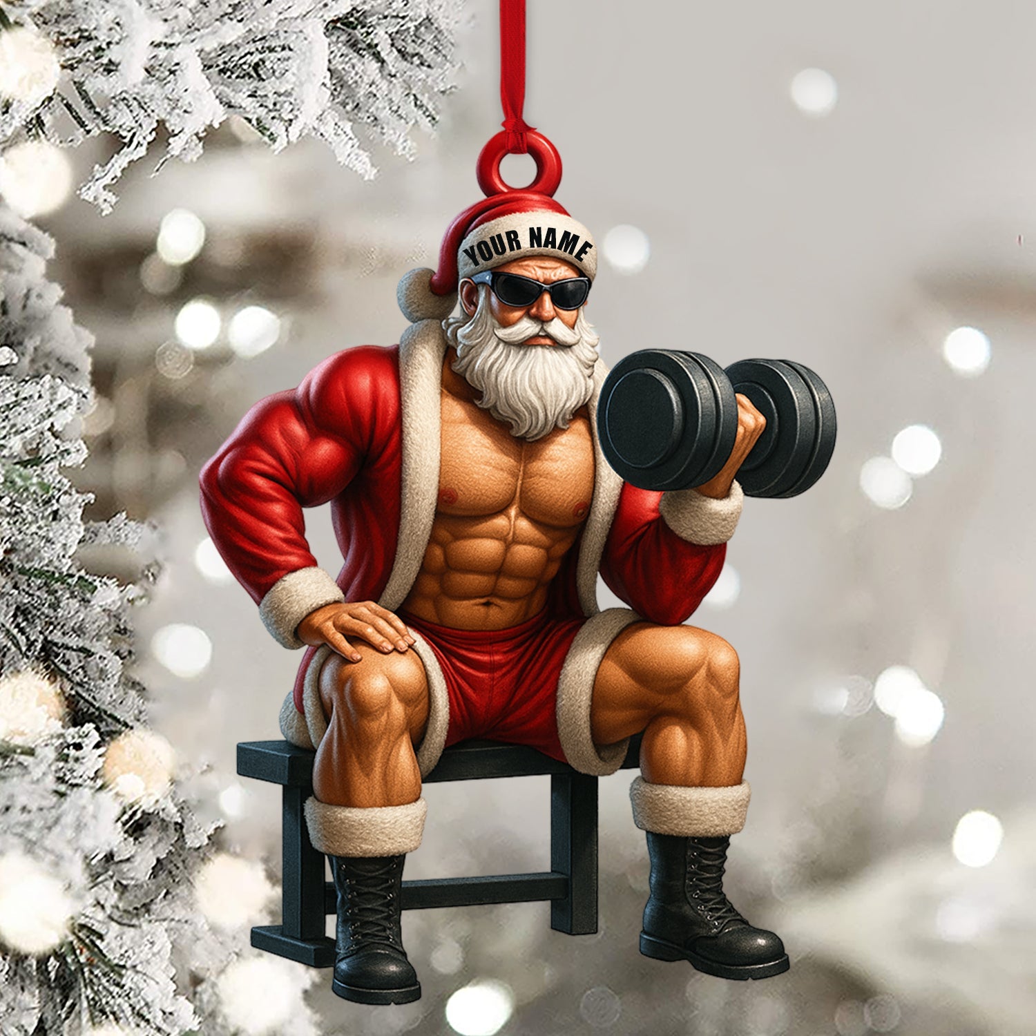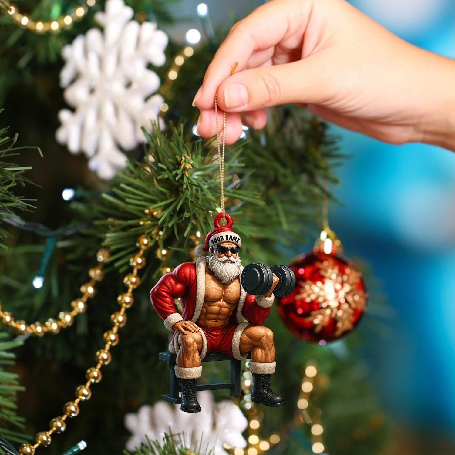 Christmas Weightlifting Santa, Home Decor, Christmas Ornament, Personalized Ornament
