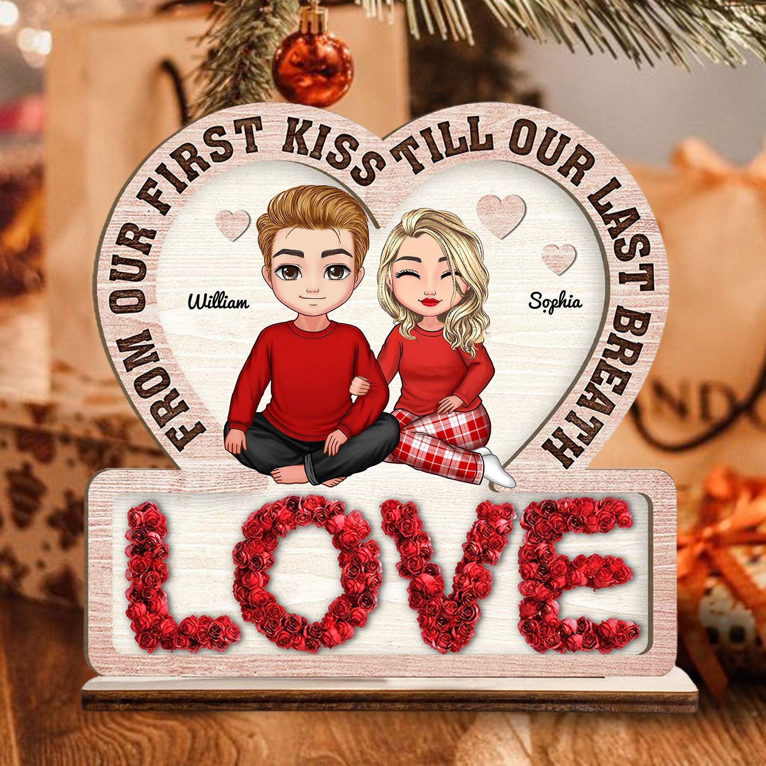 Couple Sitting Christmas, Custom Appearances And Names, Personalised Wooden Place Names - Christmas Gift For Lover - Standing Table Decoration