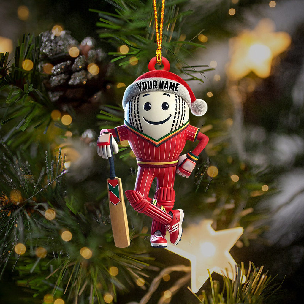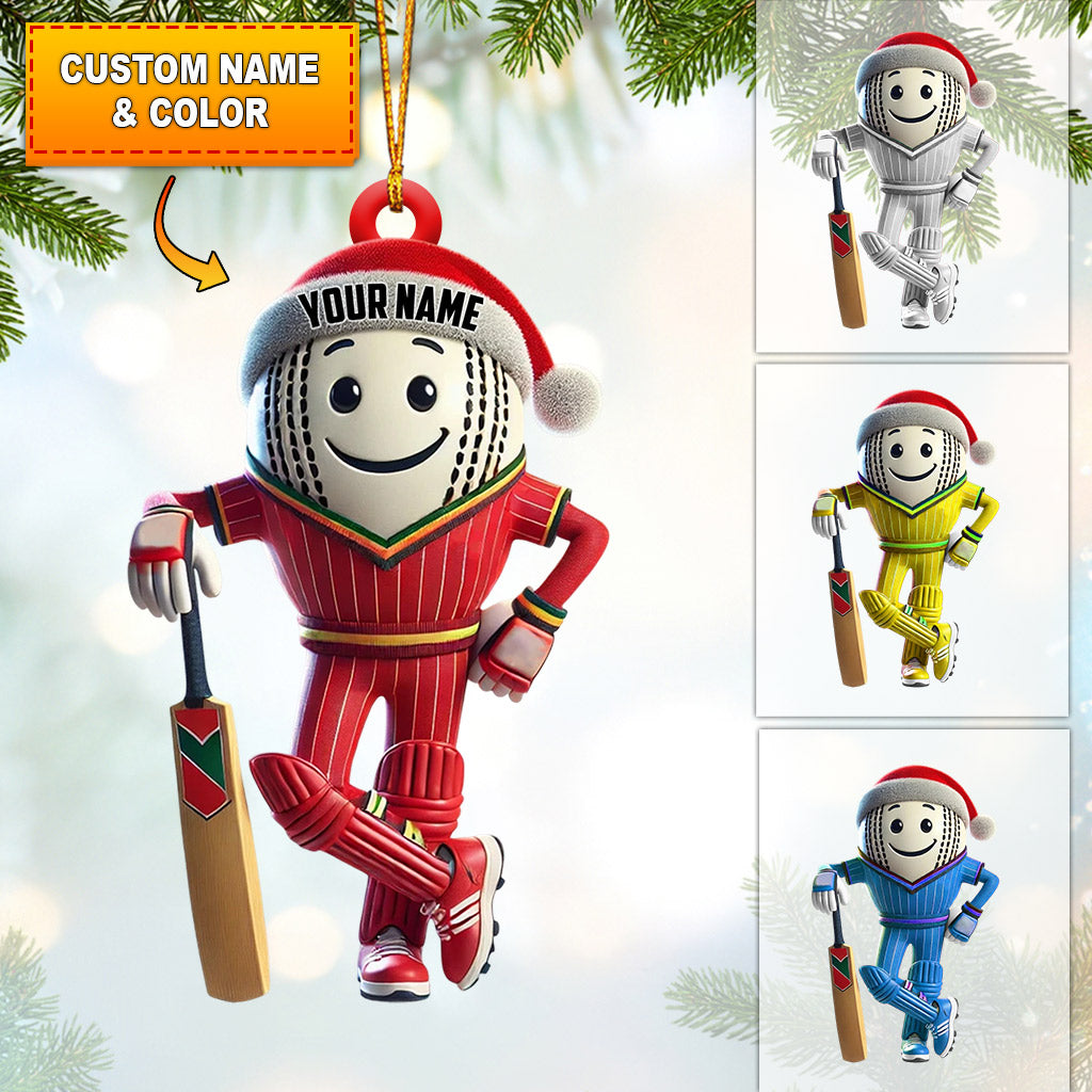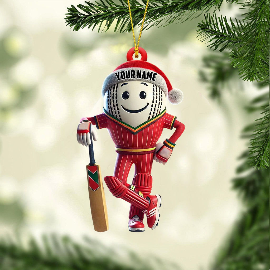 Cricket Ball Player Christmas Ornament, Personalized Ornament