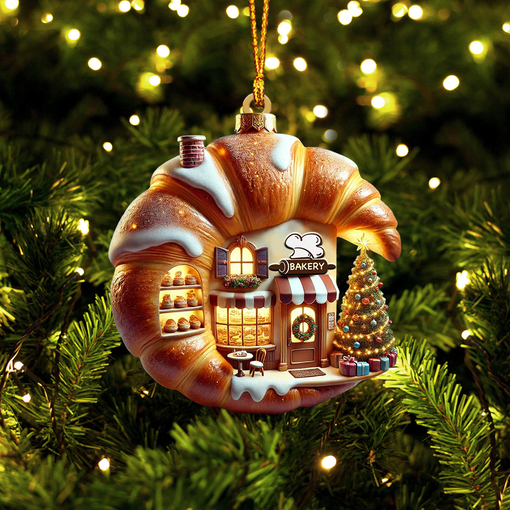 Croissant Shop Home Decor Christmas Ornament, Personalized Ornament