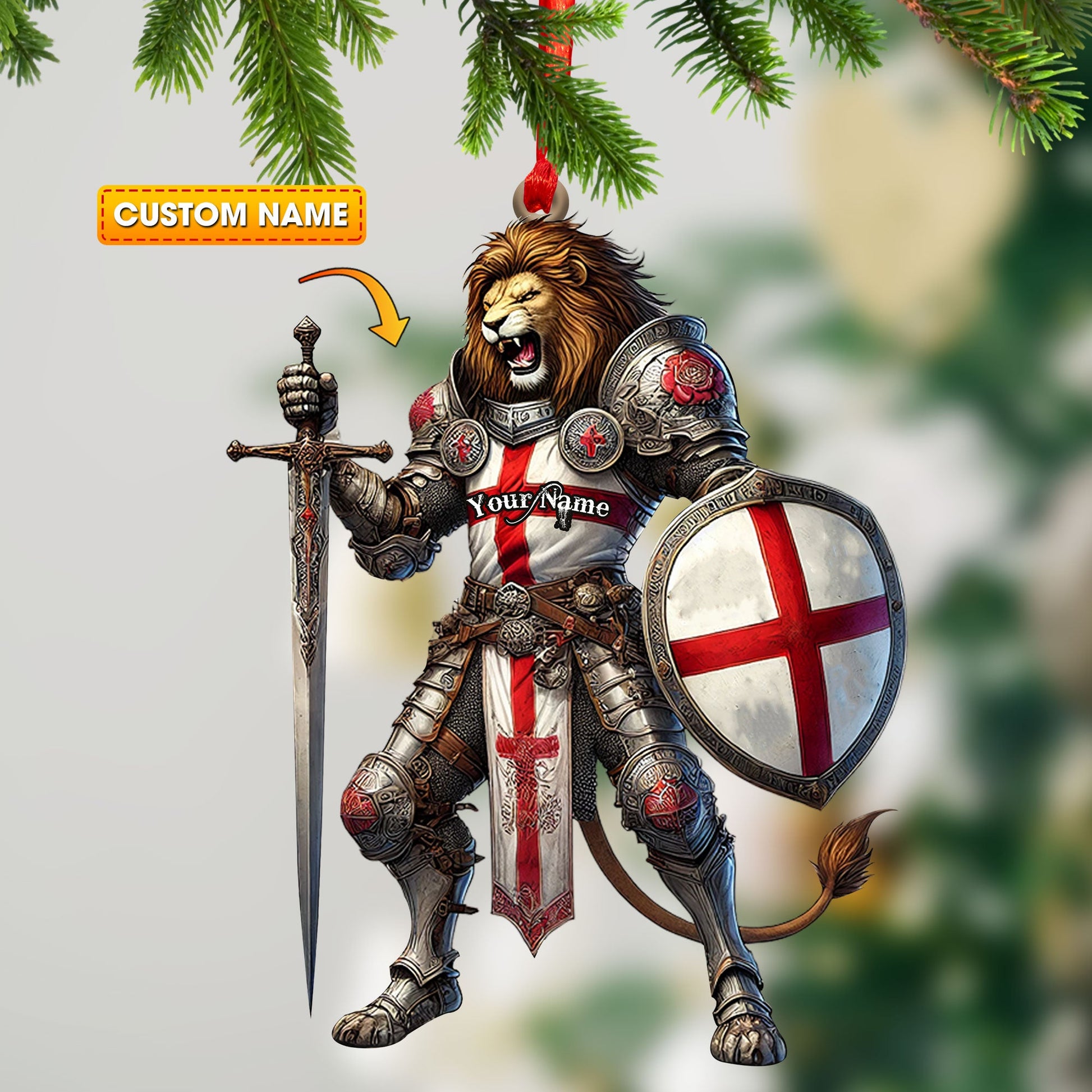 Custom England Lion Ornament, Personalized Ornament