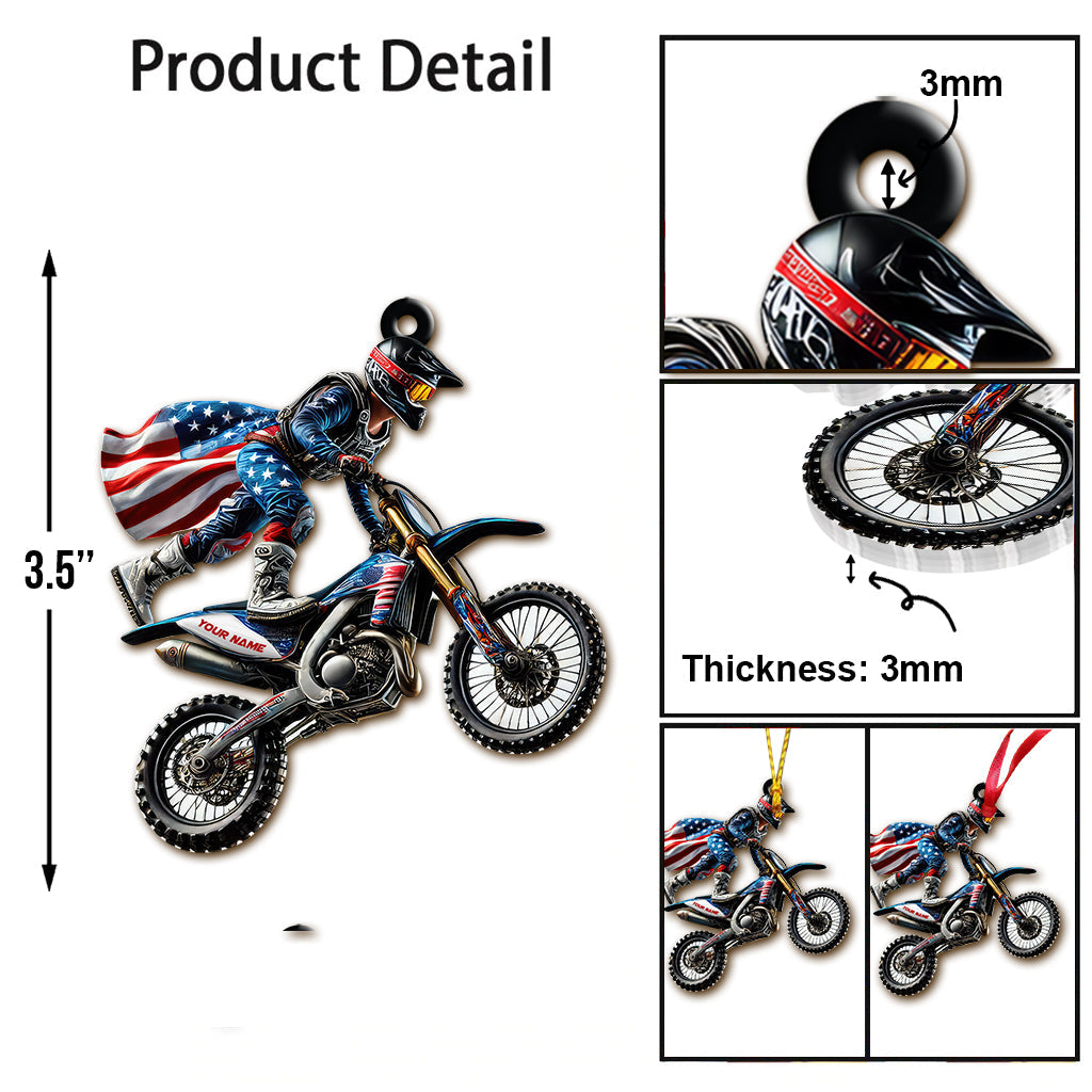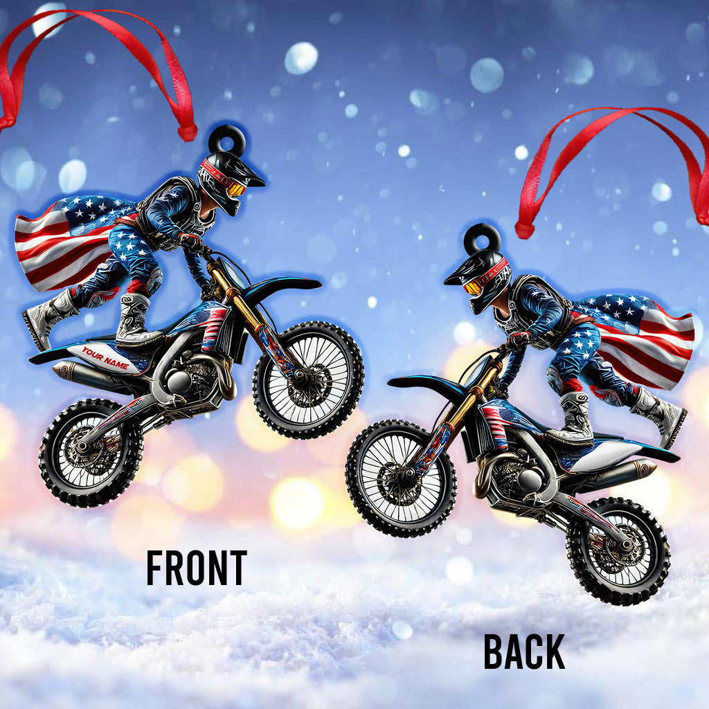 Custom Name American Motocross Ornament, Motocross Christmas Gift