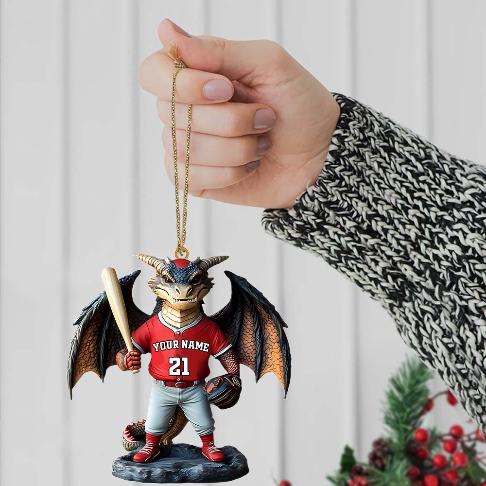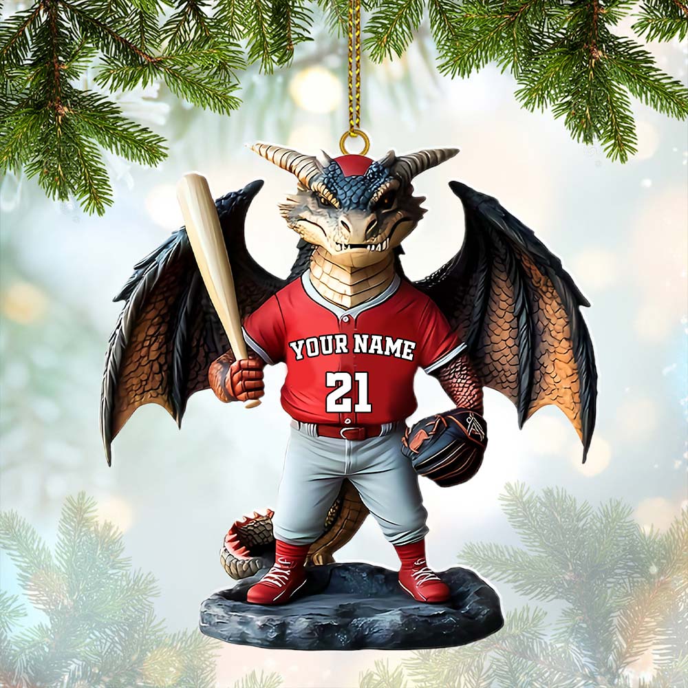Custom Name and Number Baseball Dragon Ornament, Christmas Gift for Baseball Lover