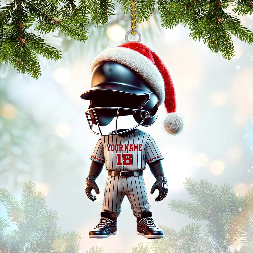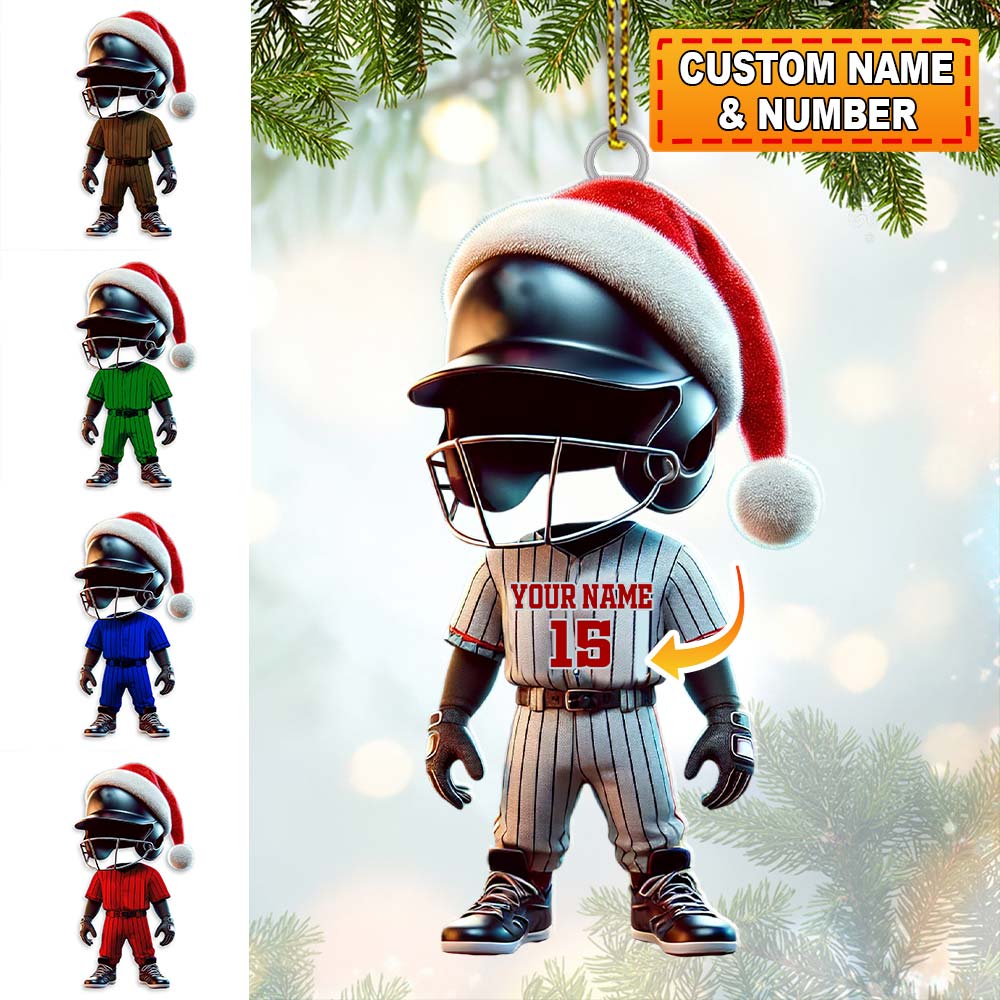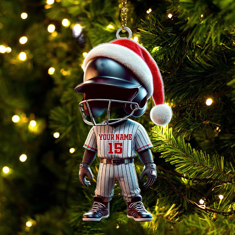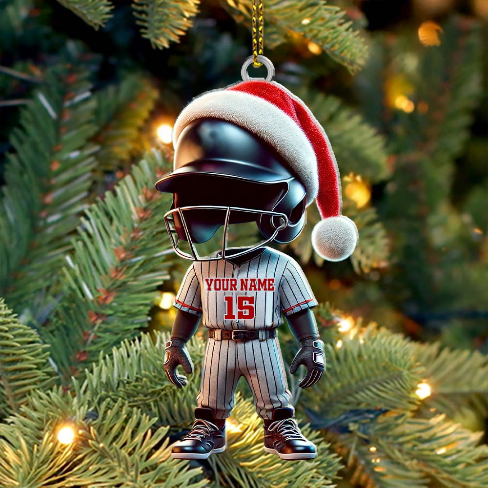 Custom Name and Number Baseball Ornament, Baseball Lover Christmas Gift