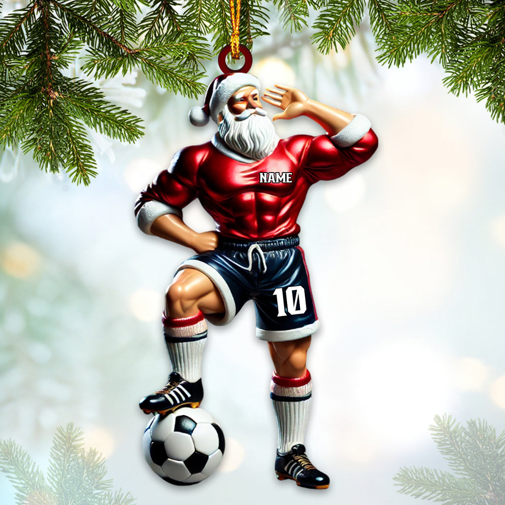 Custom Name and Number Santa Soccer Ornament, Christmas Gift Decoration
