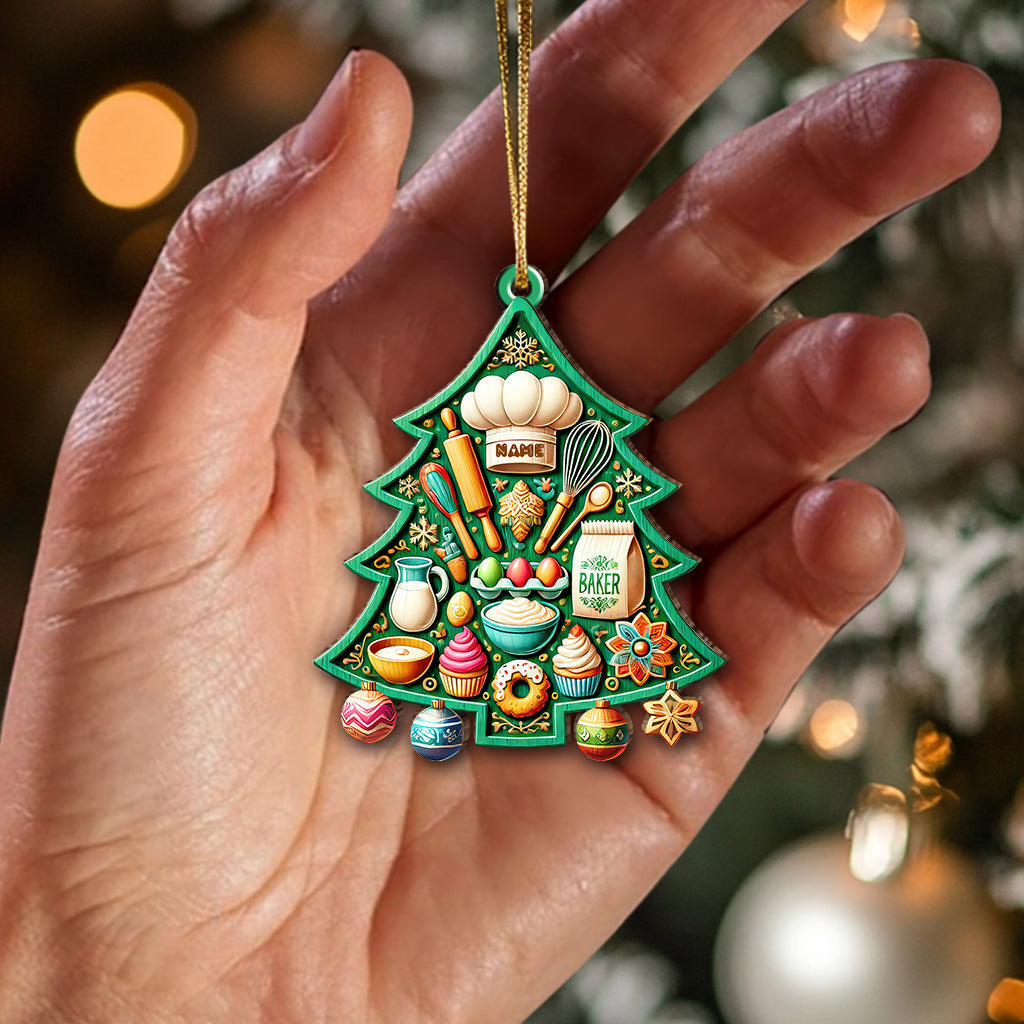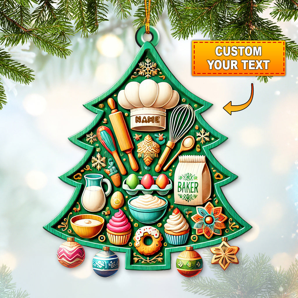 Custom Name Baker Ornament, Christmas Gift for Baker Lover