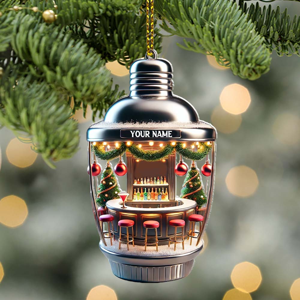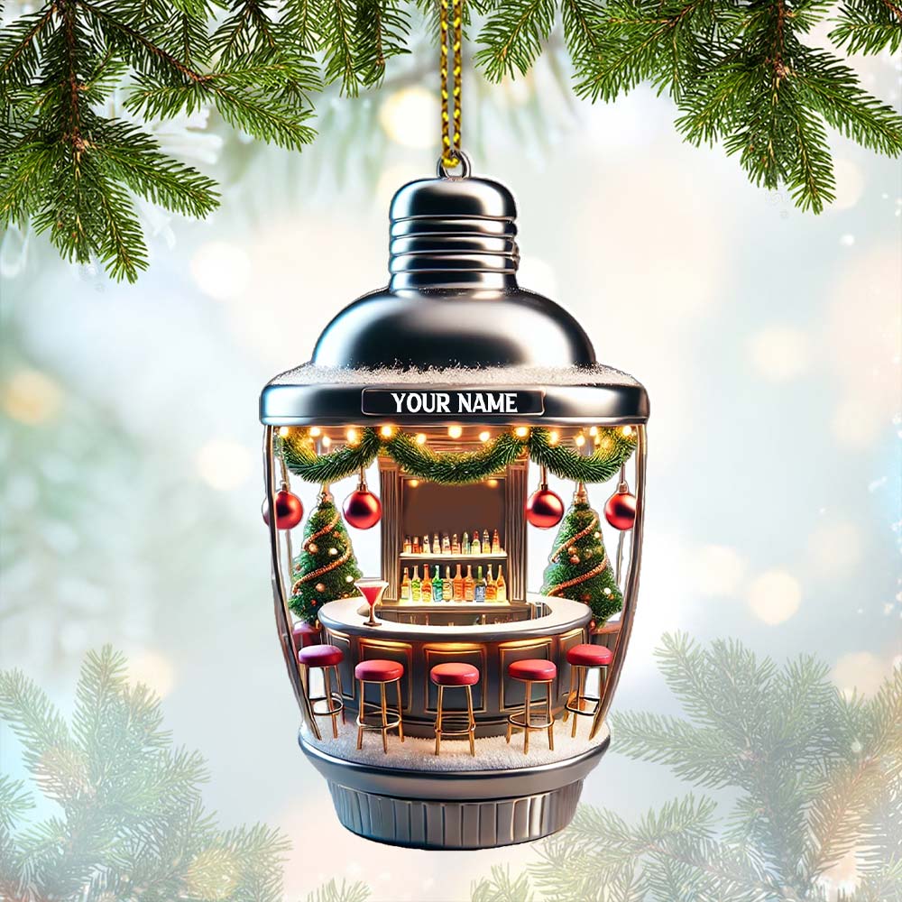 Custom Name Bartender Ornament, Barista Christmas Decoration