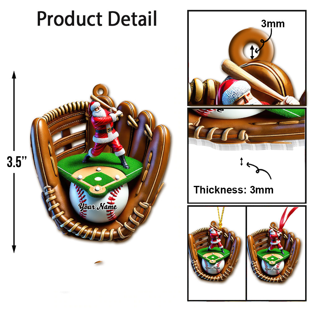 Custom Name Baseball Santa Ornament, Baseball Lover Christmas Gift