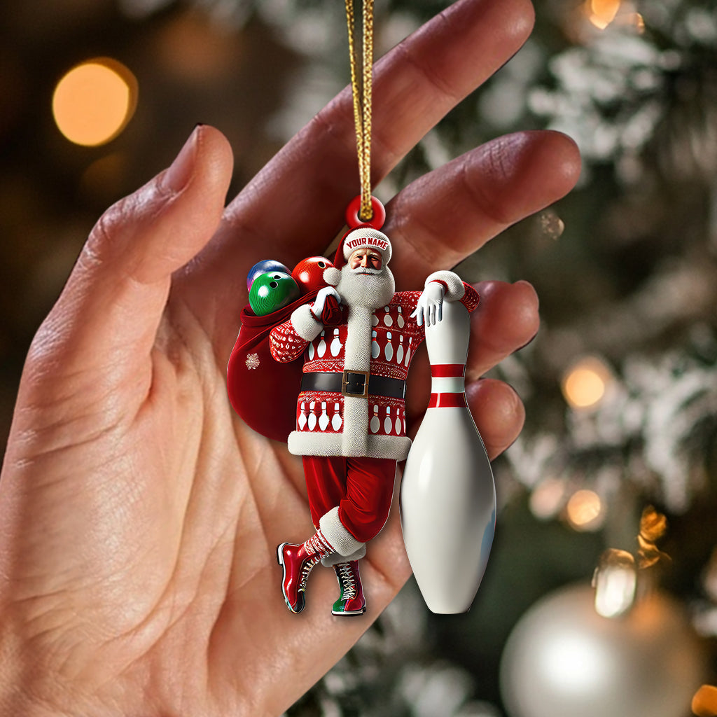 Custom Name Bowling Santa Ornament, Bowling Lover Christmas Gift