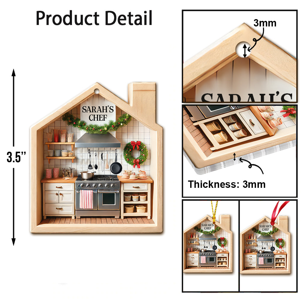 Custom Name Chef Kitchen Ornament, Chef Kitchen Christmas Decoration