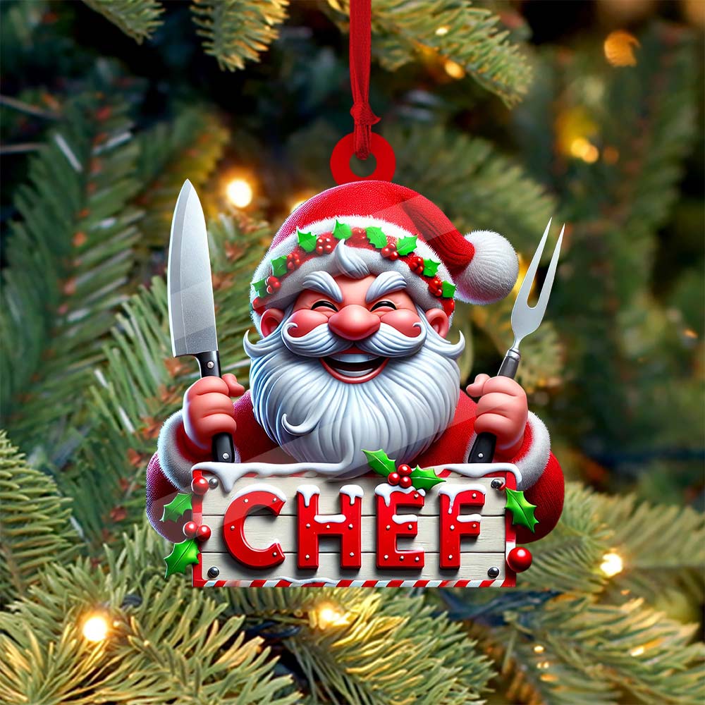 Custom Name Chef Ornament, Santa Chef Gift for Cooking Lover