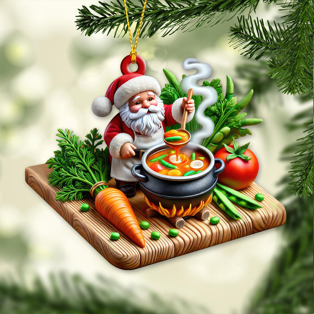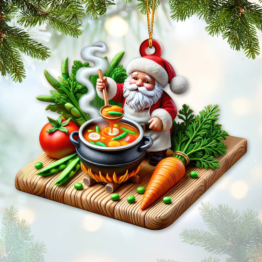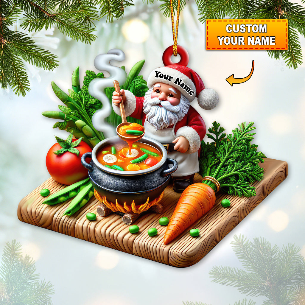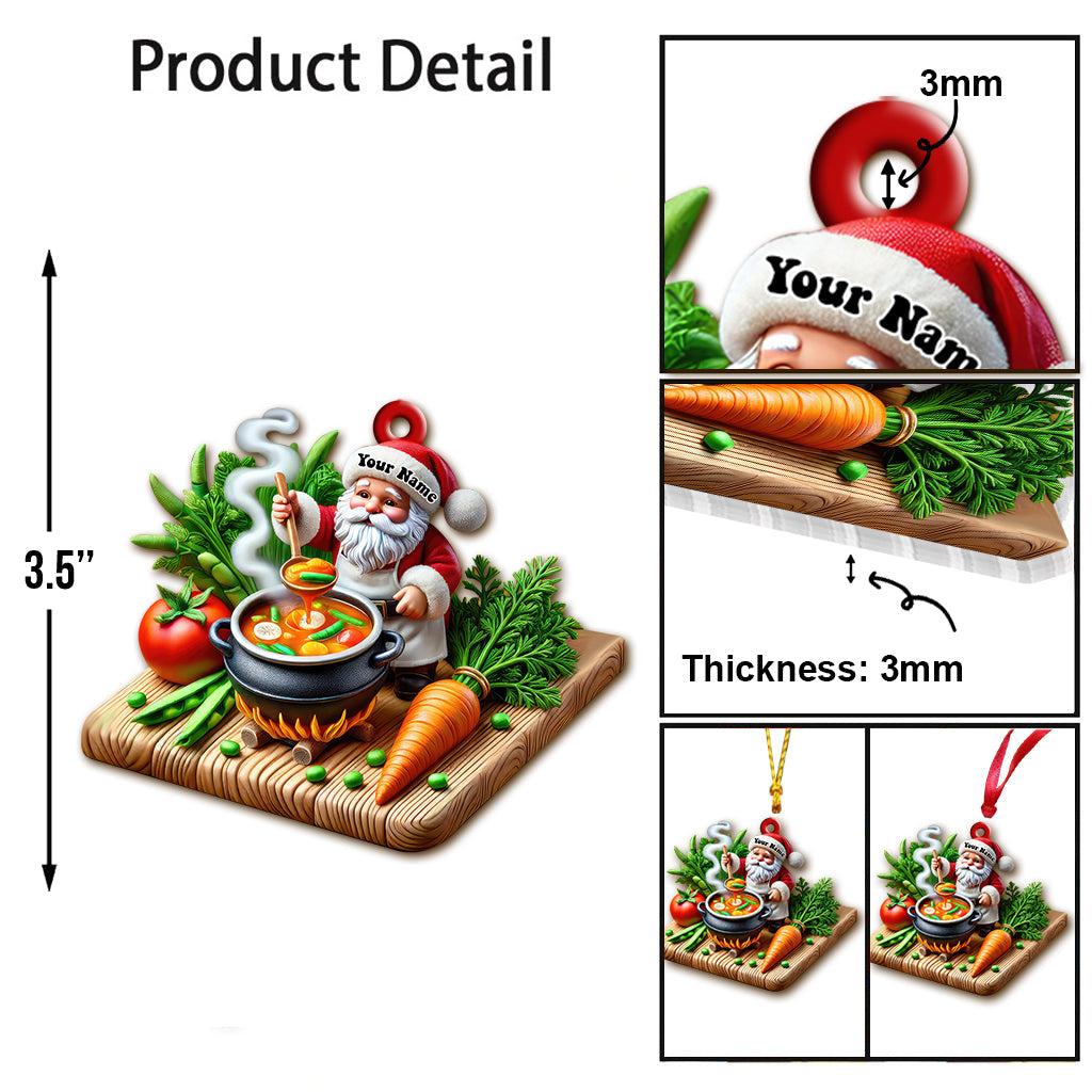 Custom Name Chef Santa Ornament, Christmas Gift for Cooking Lover