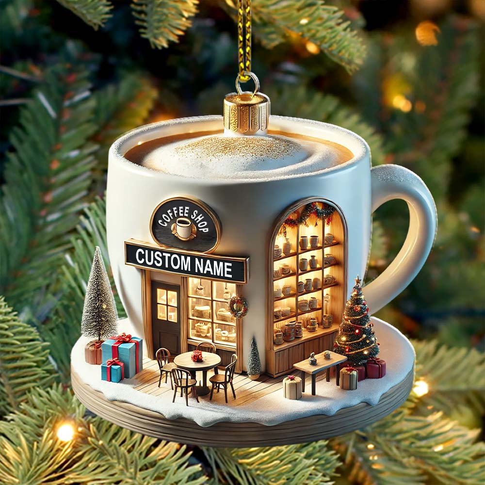 Custom Name Coffee Shop Ornament, Christmas Decoration for Coffee Shop
