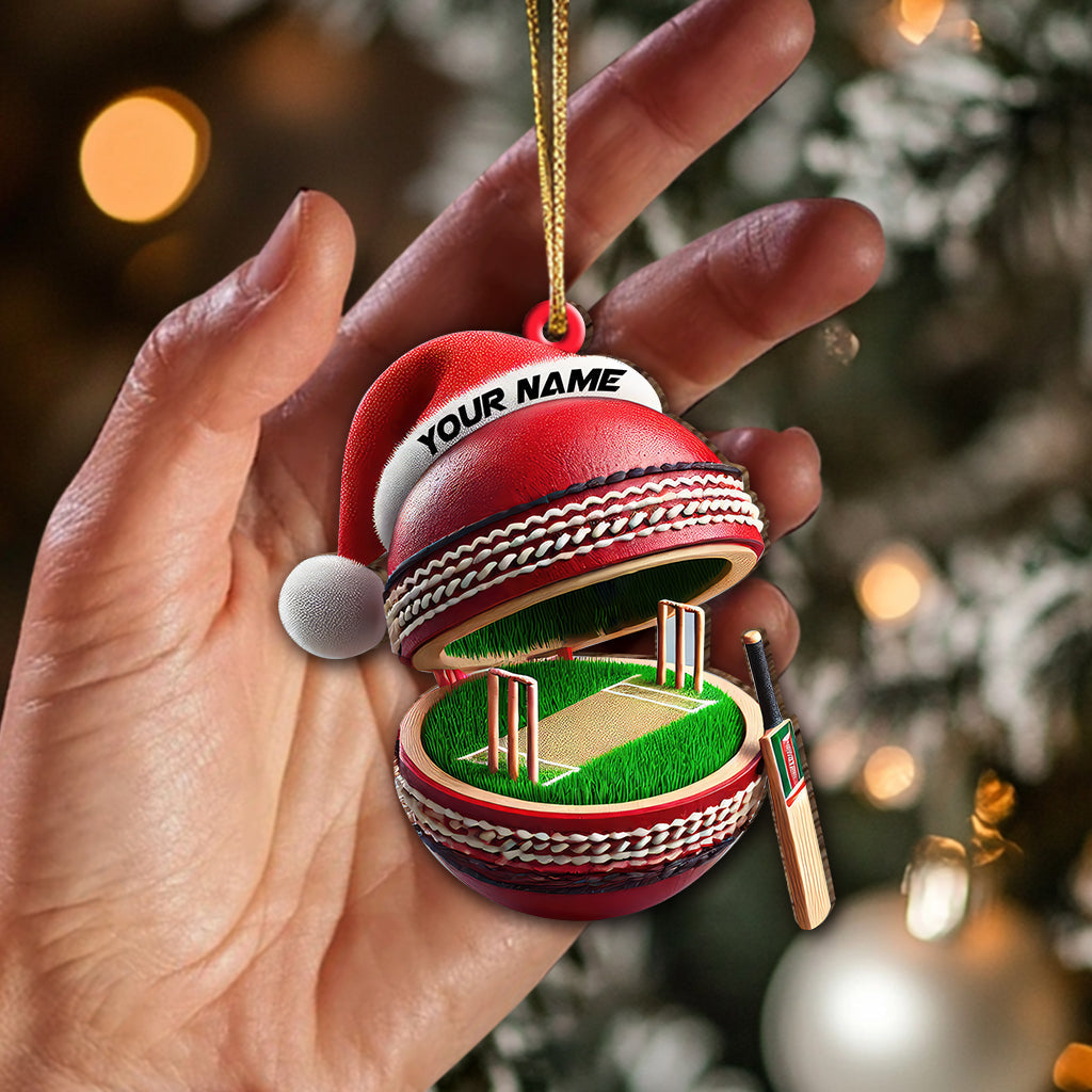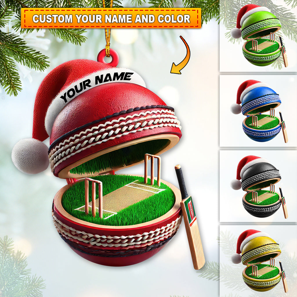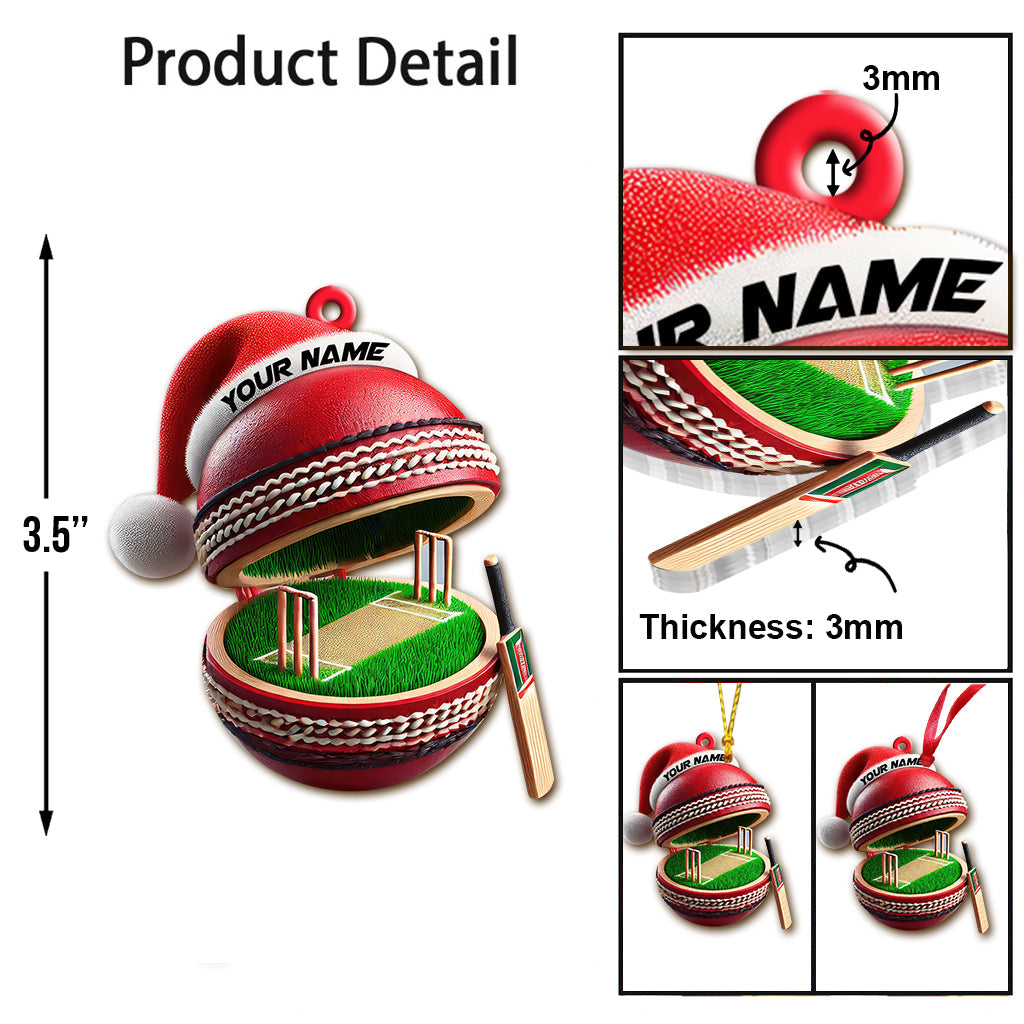 Custom Name Cricket Ball Ornament, Christmas Gift for Cricket Ball Lover
