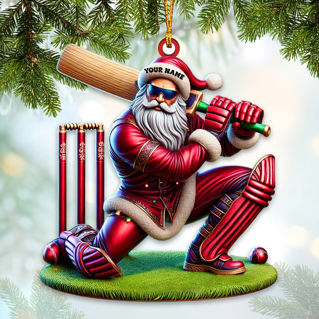 Custom Name Cricket Ball Santa Ornament, Cricket Ball Lover Christmas Gift