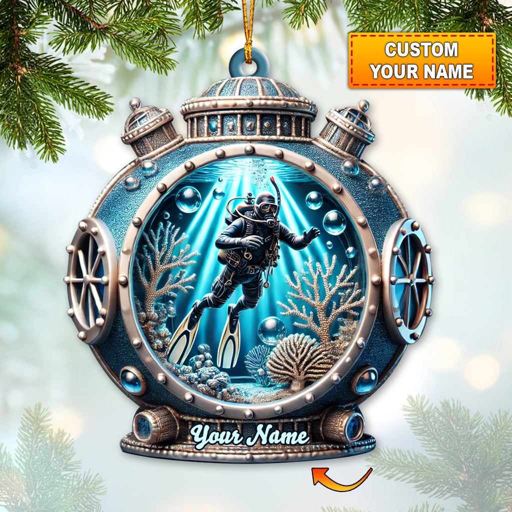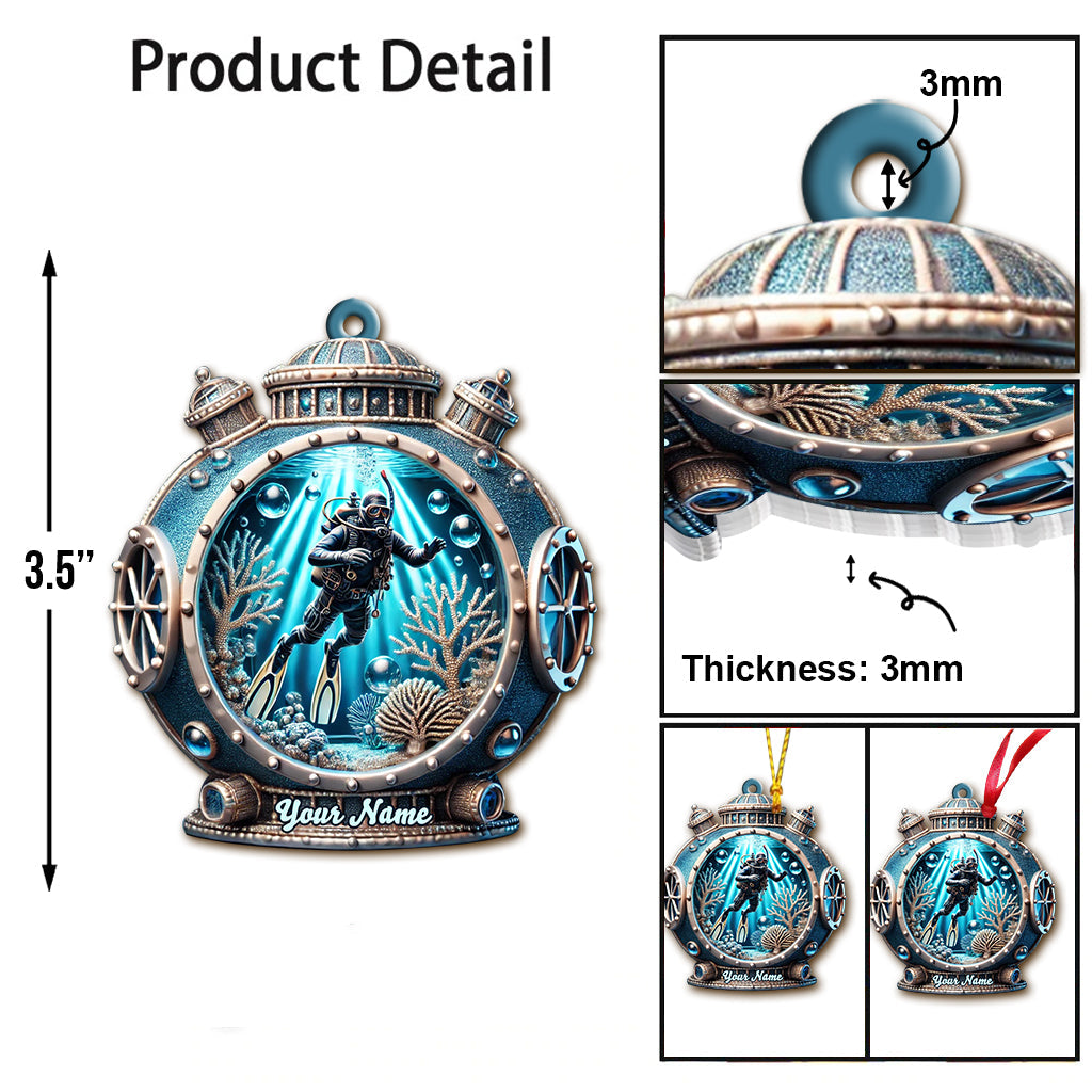 Custom Name Diving Ornament, Christmas Gift for Diving Lover