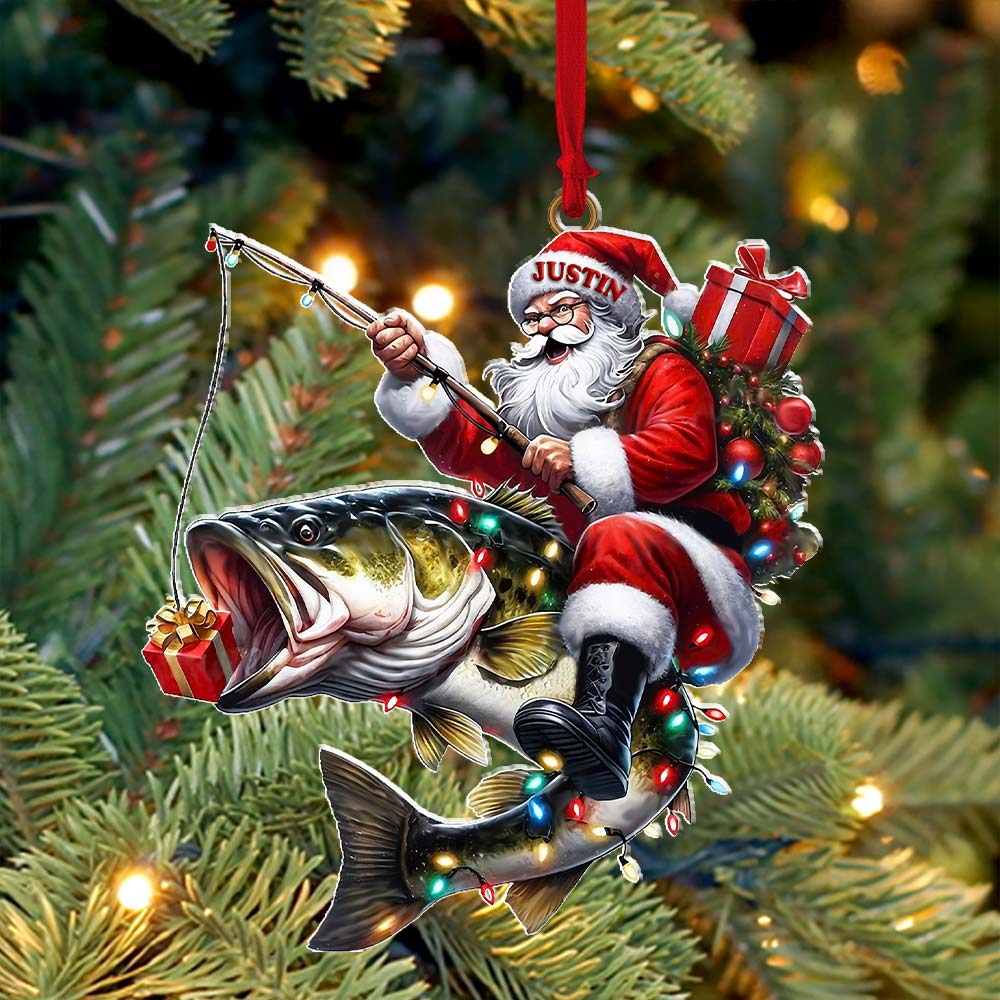 Custom Name Fishing Santa Ornament, Christmas Gift