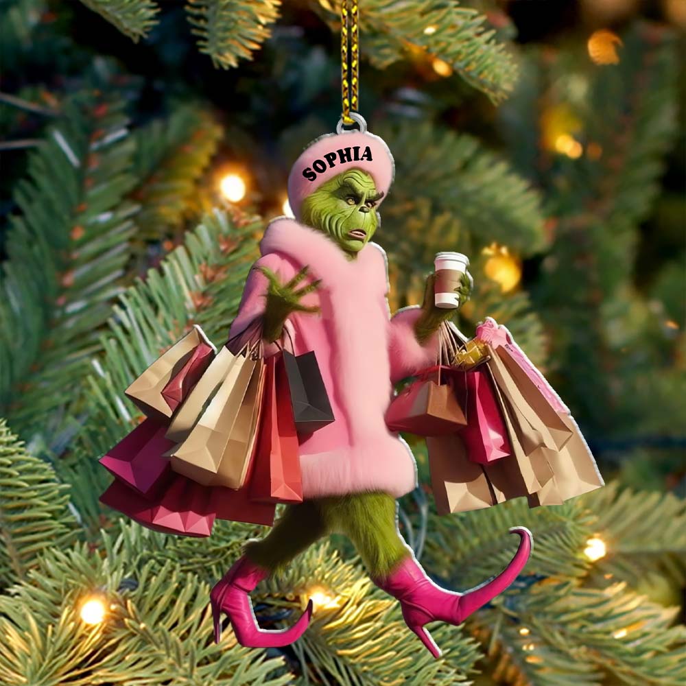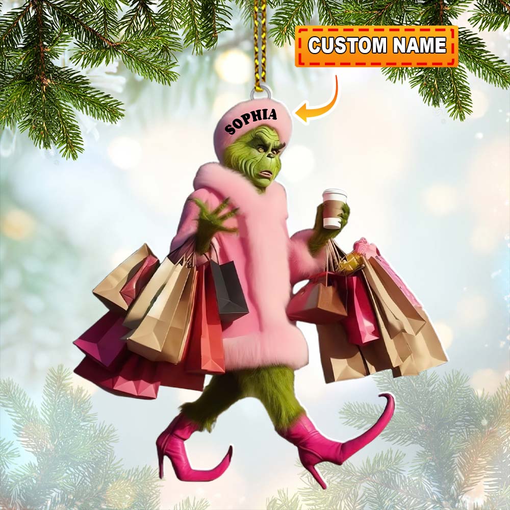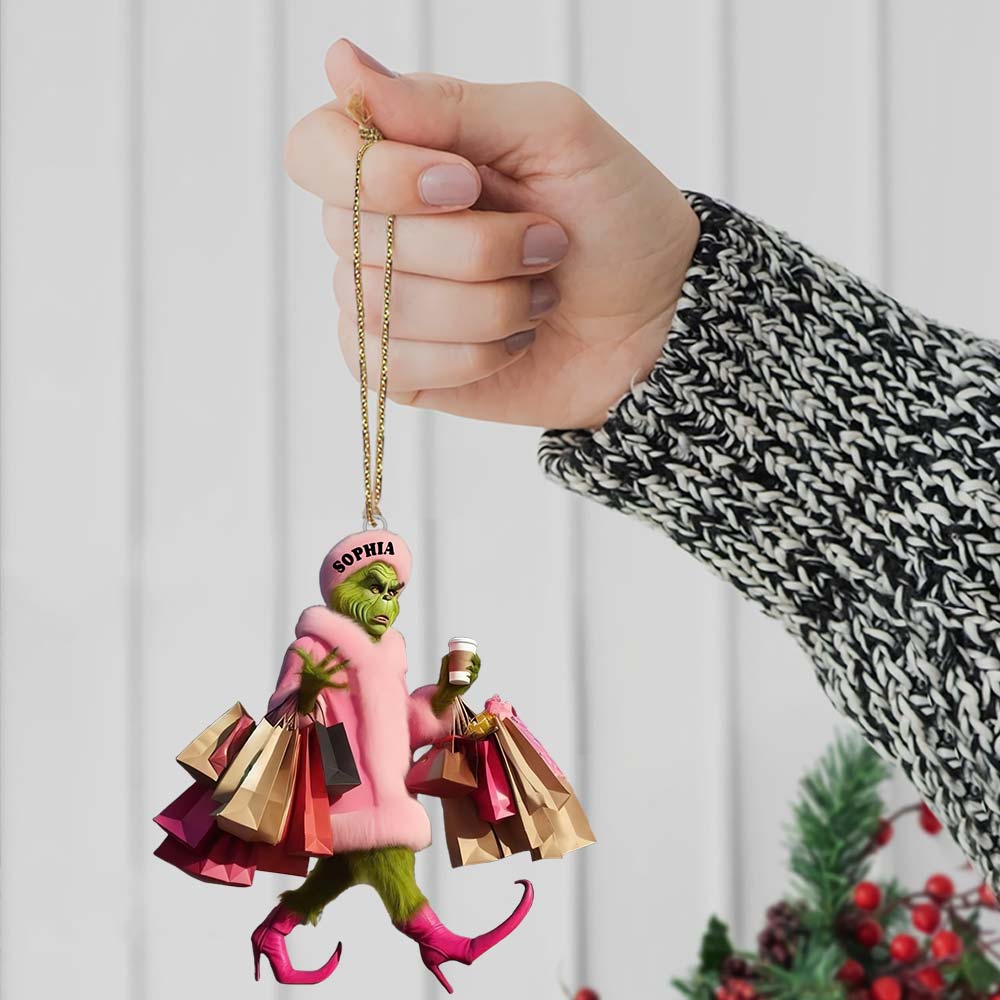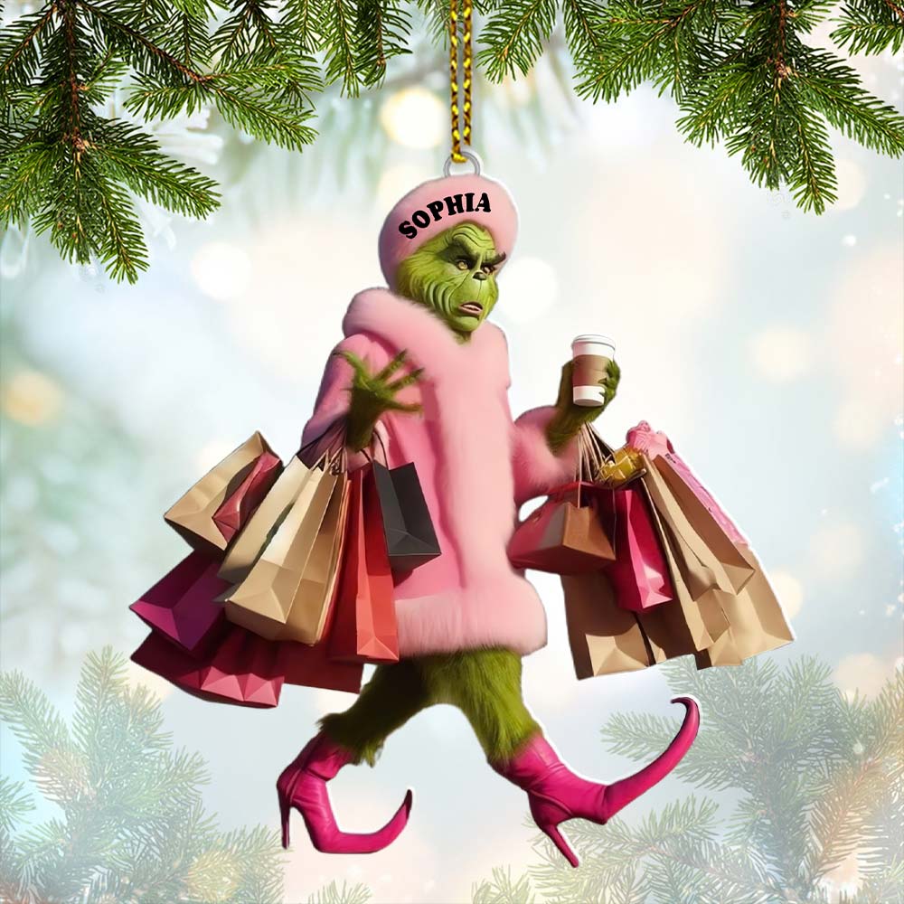 Custom Name Grinch Shopping Ornament, Grinch Christmas Gift