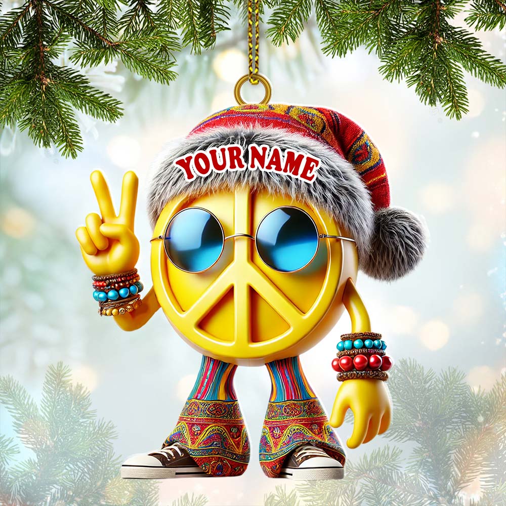 Custom Name Hippie Love Ornament, Christmas Gift Decoration