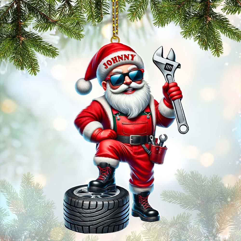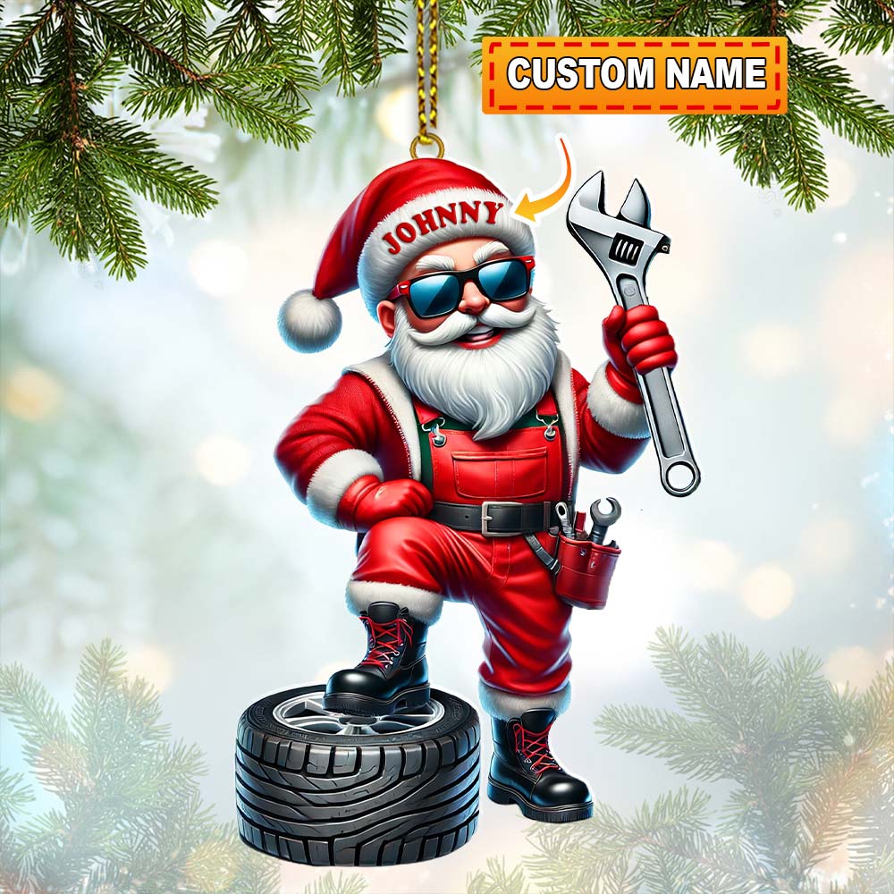Custom Name Mechanic Santa Ornament, Mechanic Christmas Gift