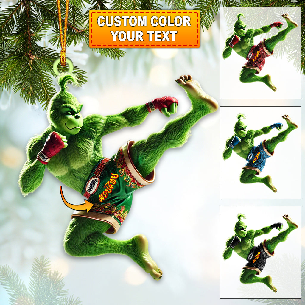 Custom Name Muay Thai Grinch Ornament, Muay Thai Lover Christmas Gift
