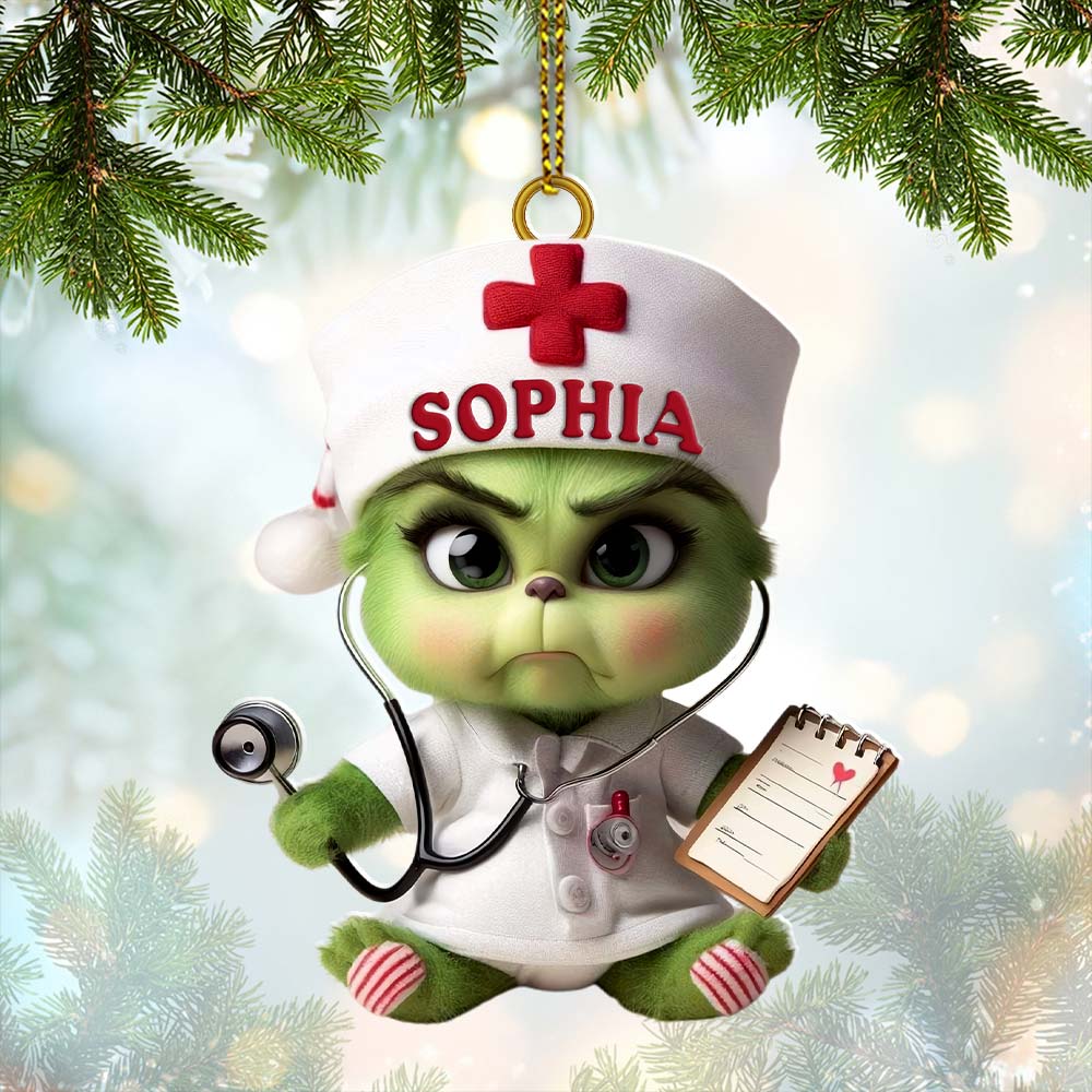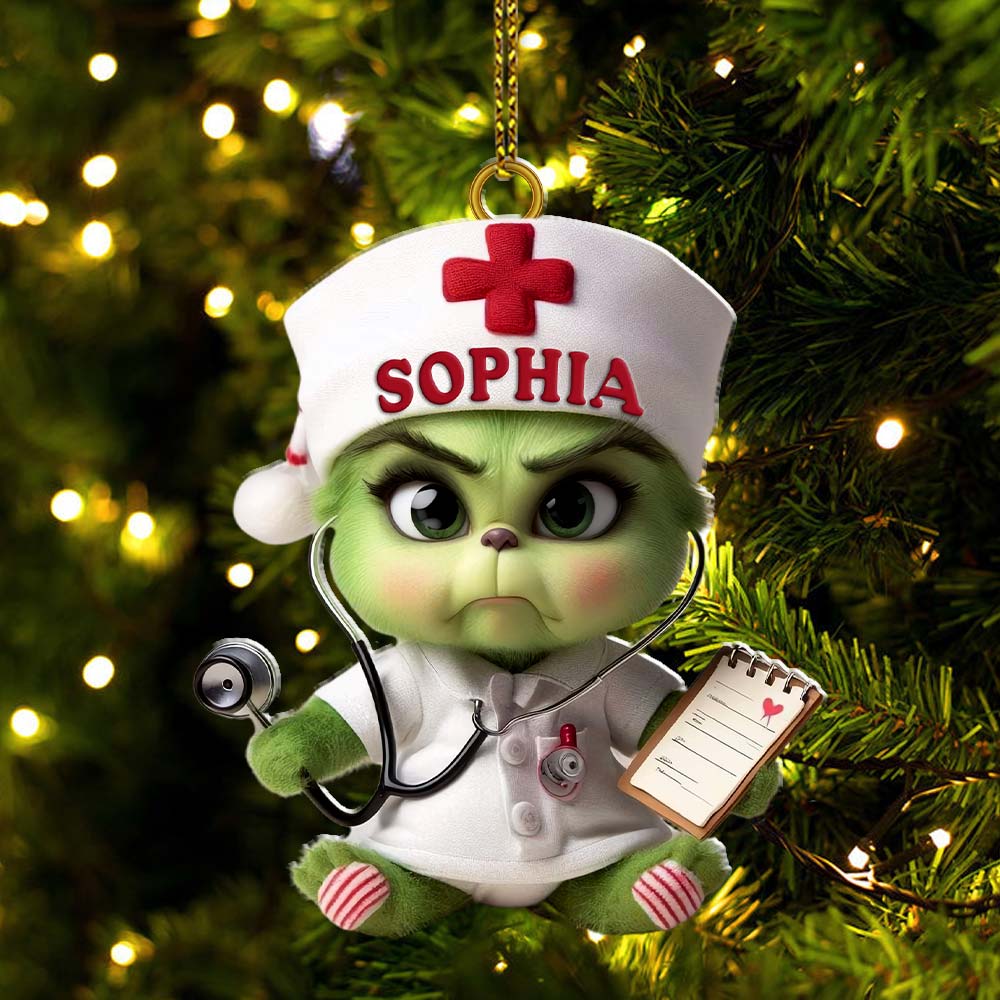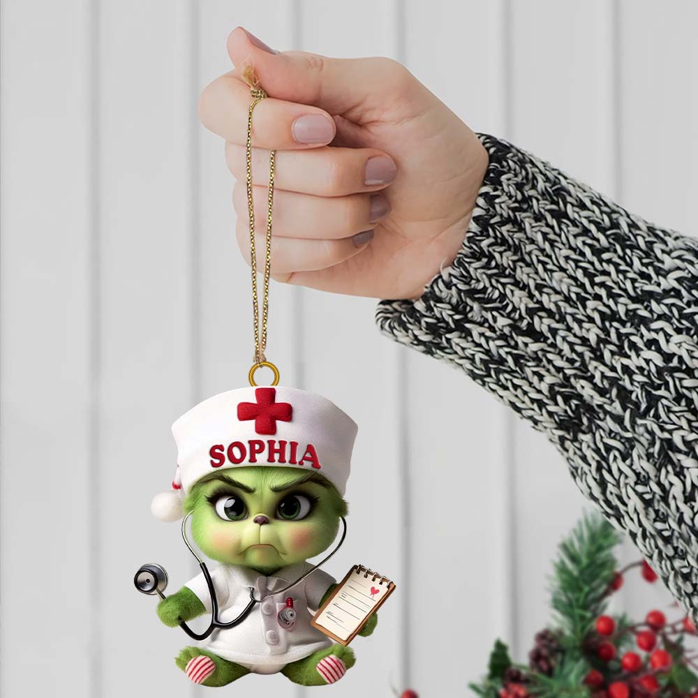 Custom Name Nurse Grinch Ornament, Christmas Gift for Nurse