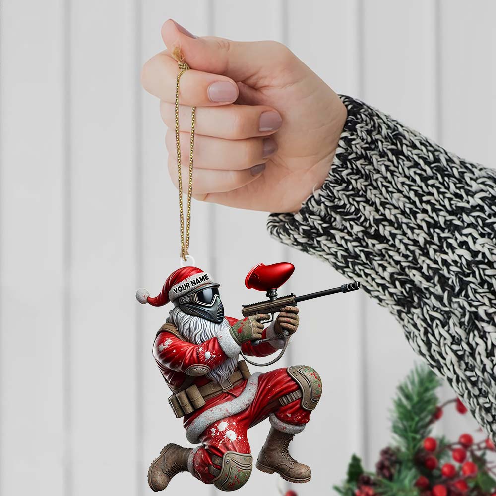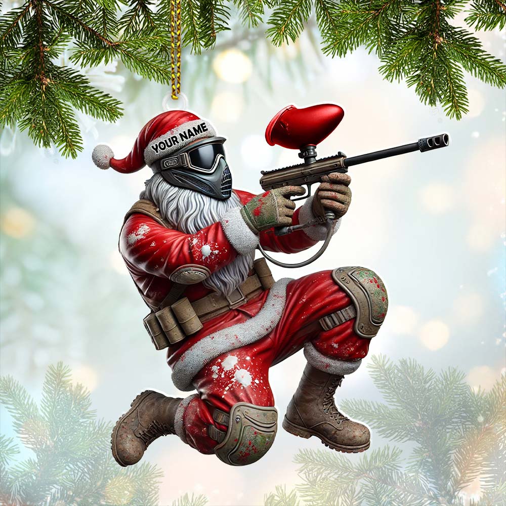 Custom Name Paintball Shooting Santa Ornament, Paintball Shooting Christmas Gift