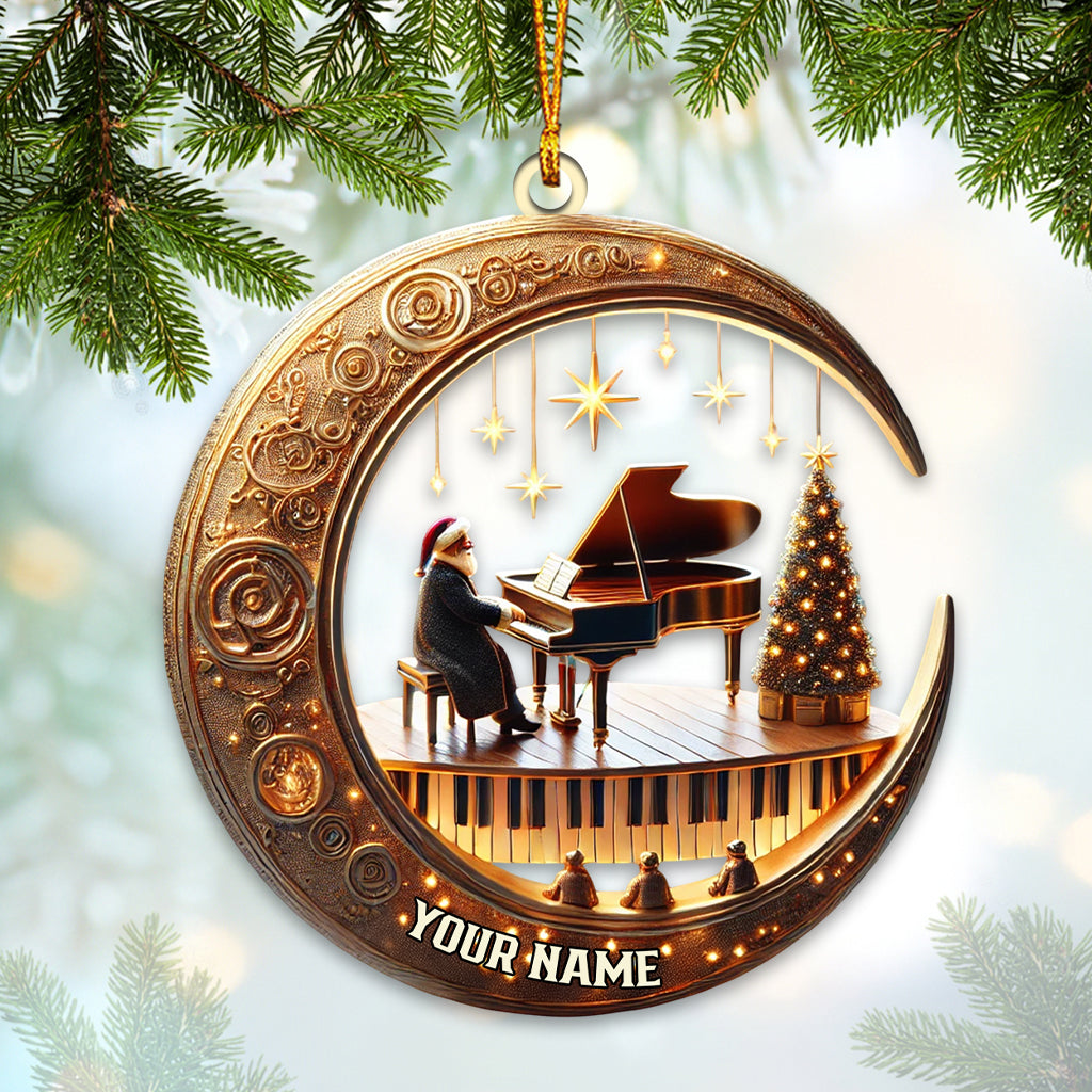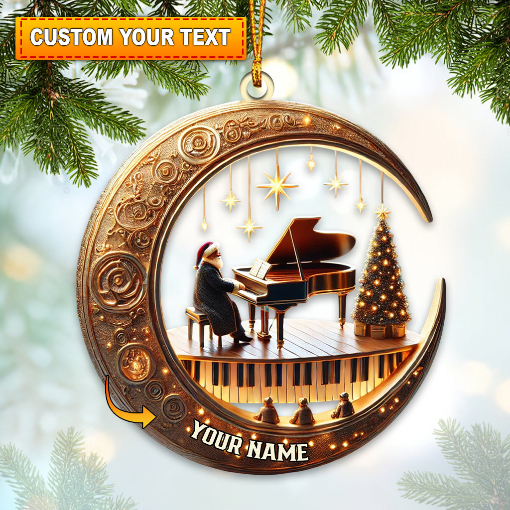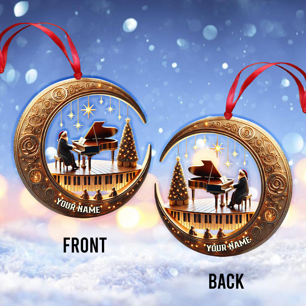 Custom Name Piano Santa Ornament, Christmas Gift Decoration