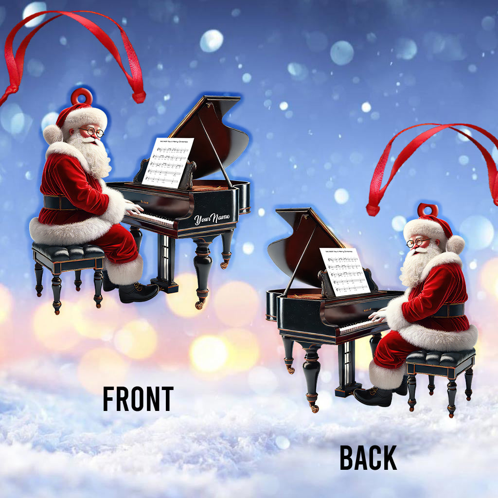 Custom Name Piano Santa Ornament, Christmas Gift for Pianist