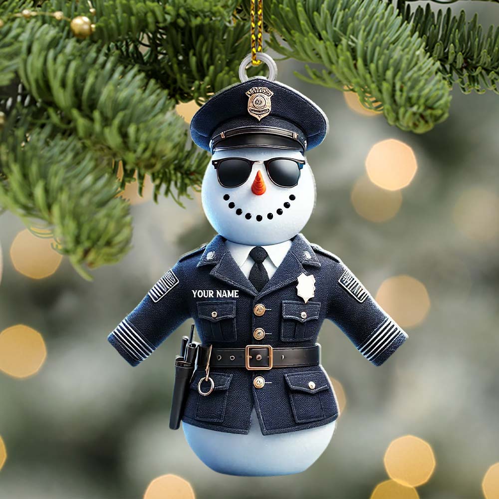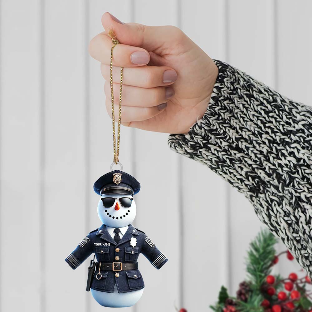 Custom Name Police Snowman Ornament, Christmas Gift for Police