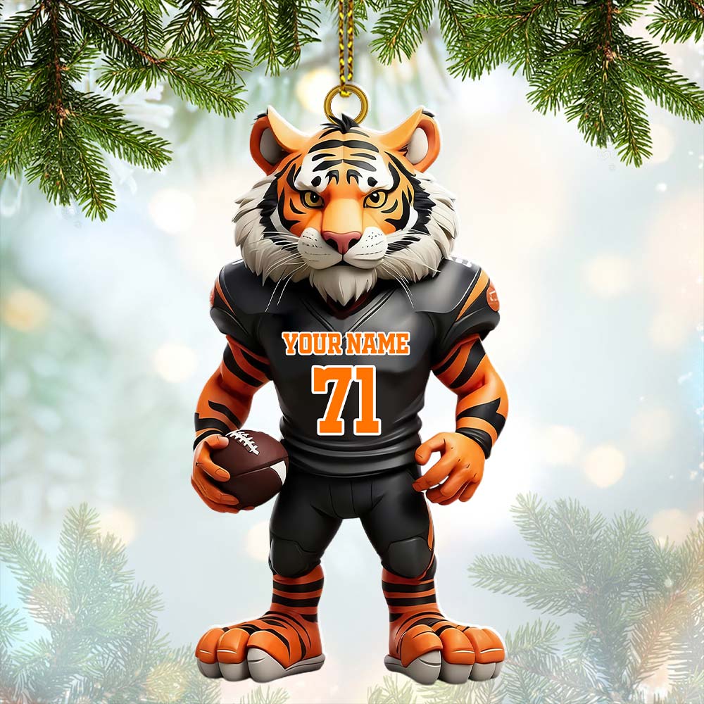 Custom Name Rugby Football Tiger Ornament, Rugby Football Lover Christmas Gift
