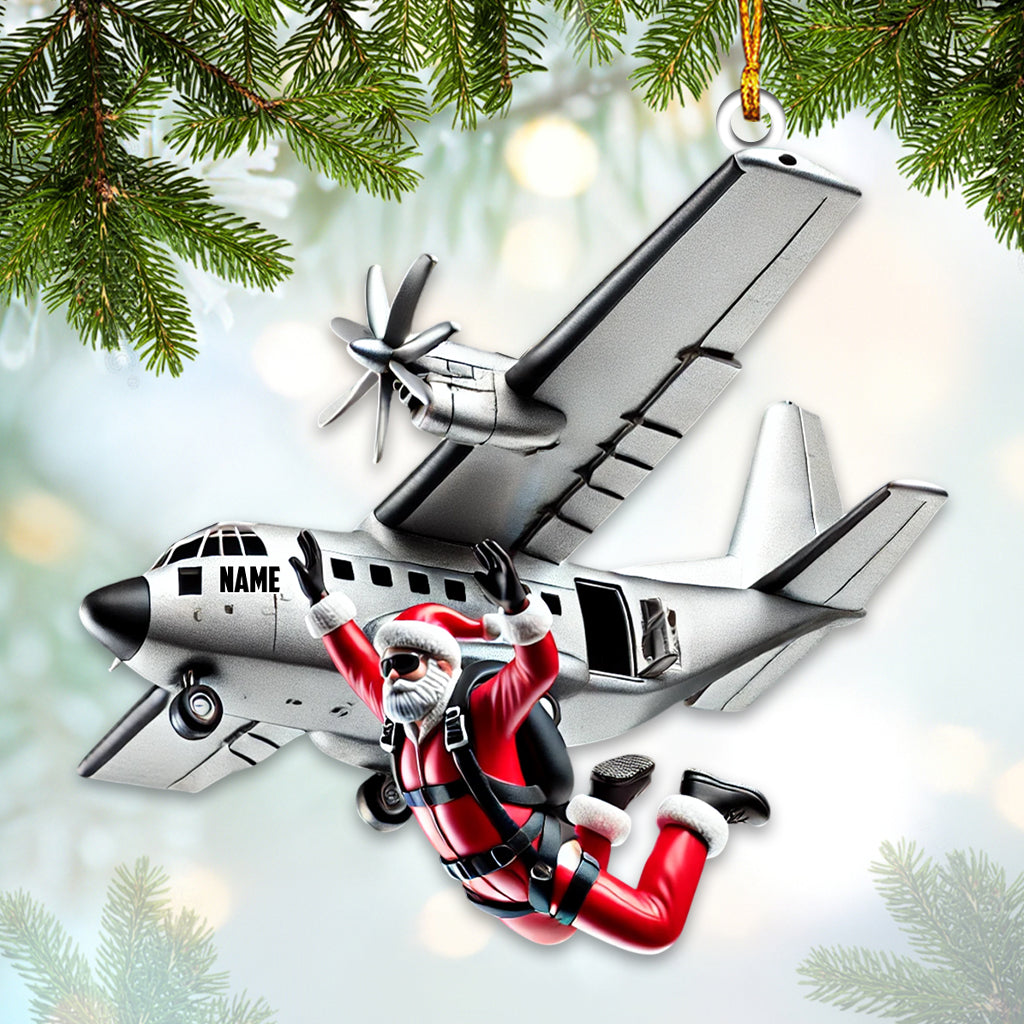 Custom Name Santa Airplane Ornament, Christmas Gift for Airplane Lover