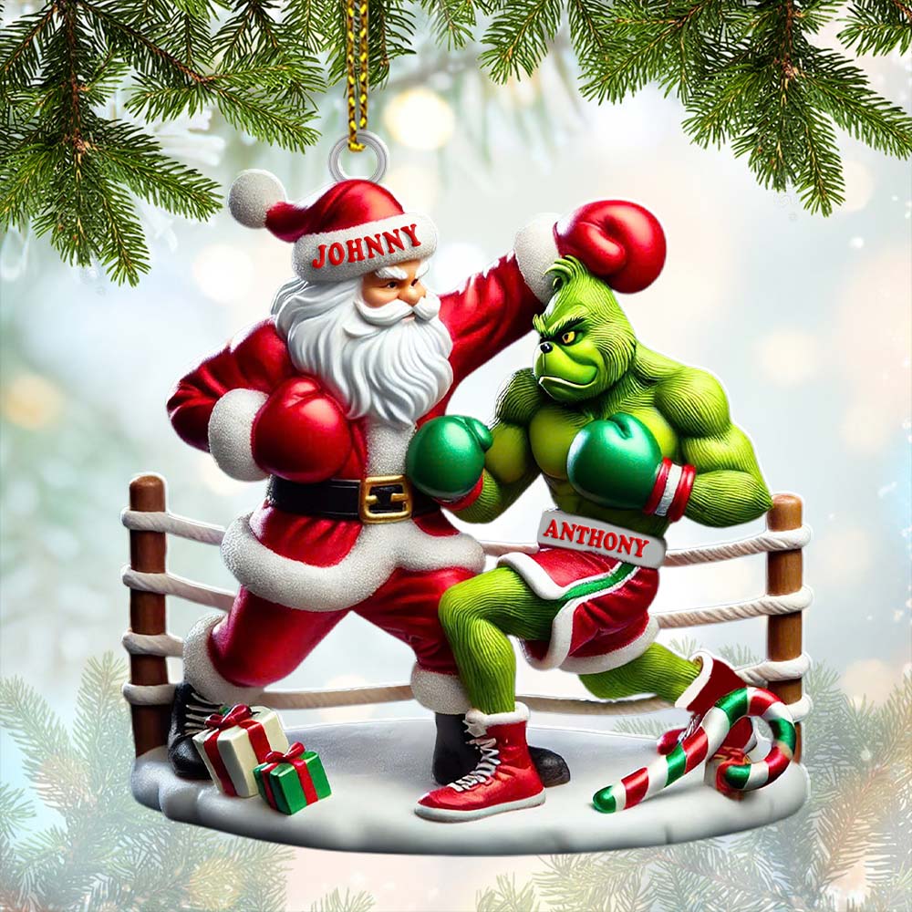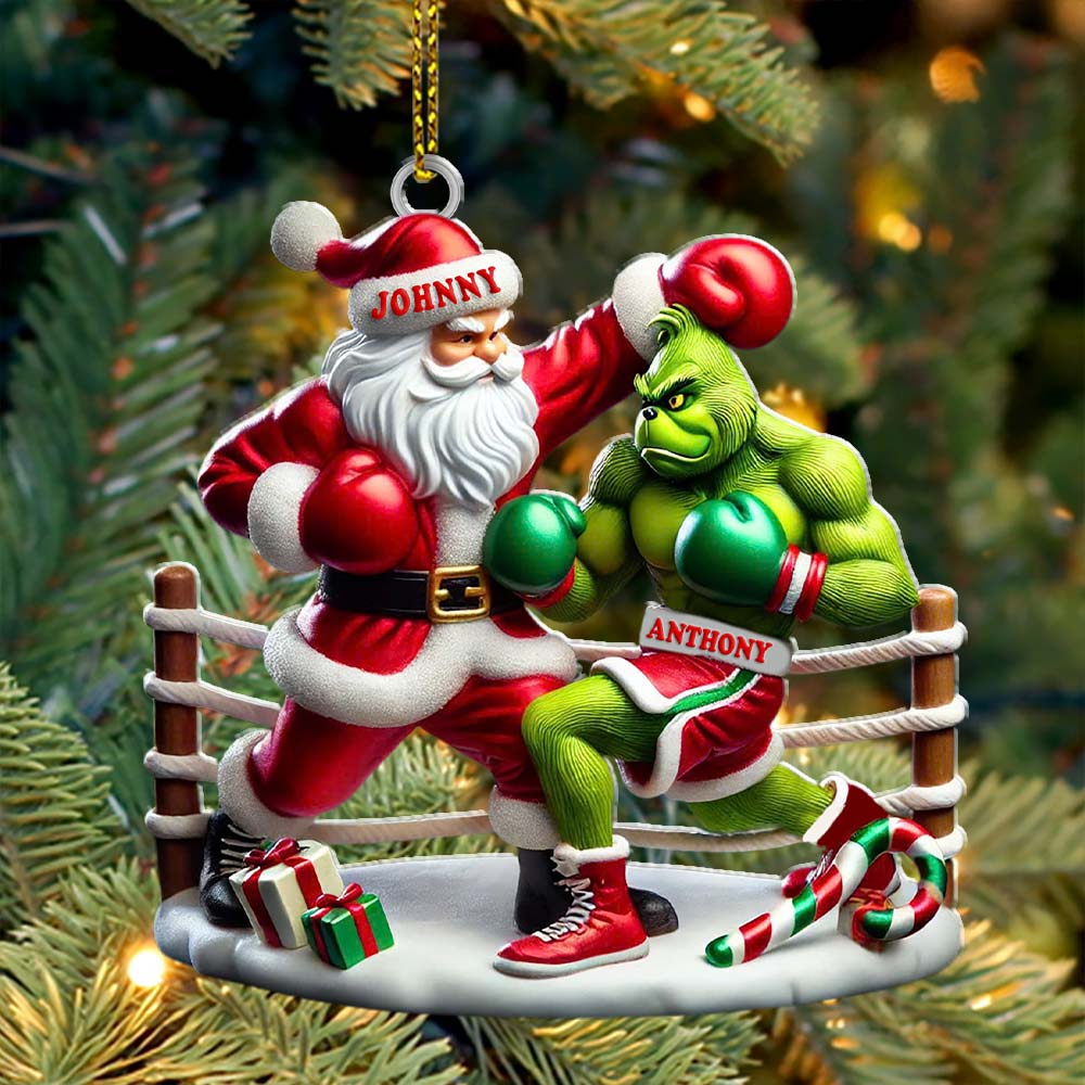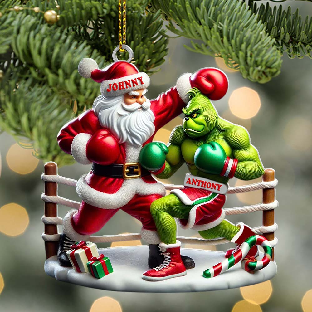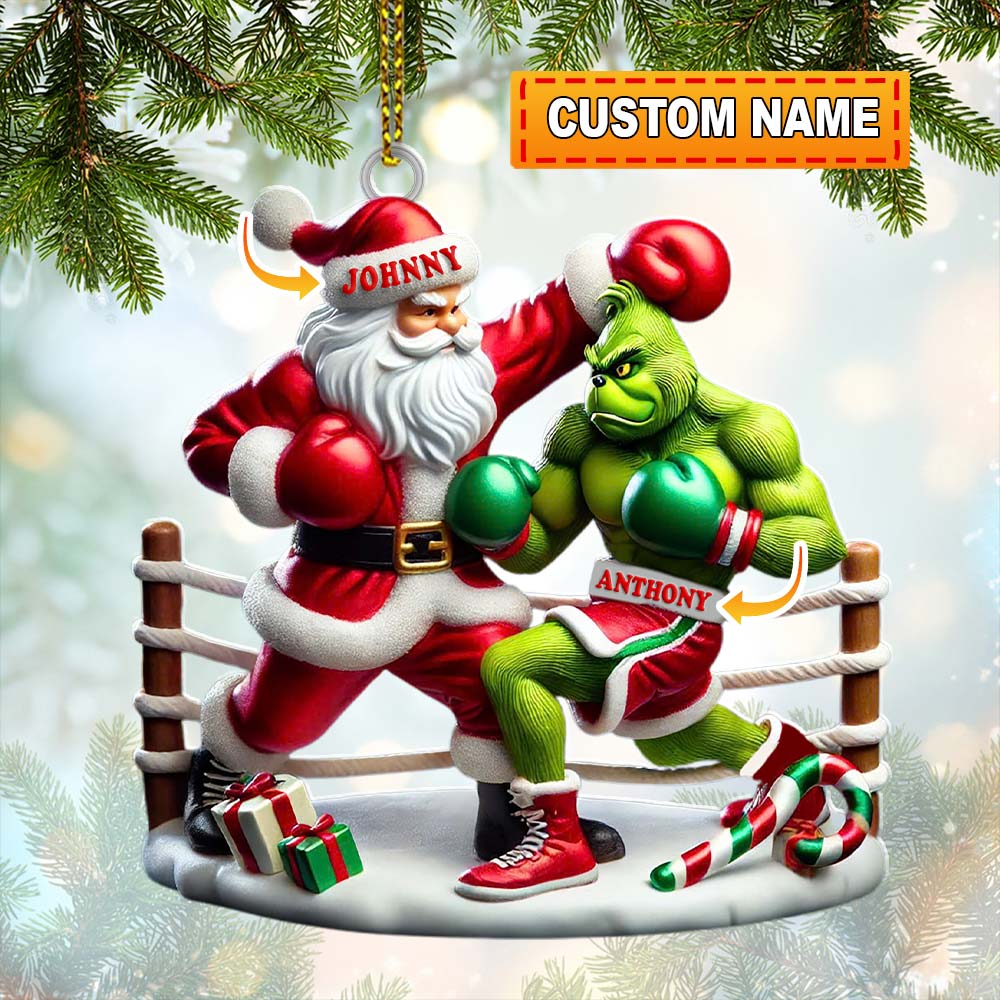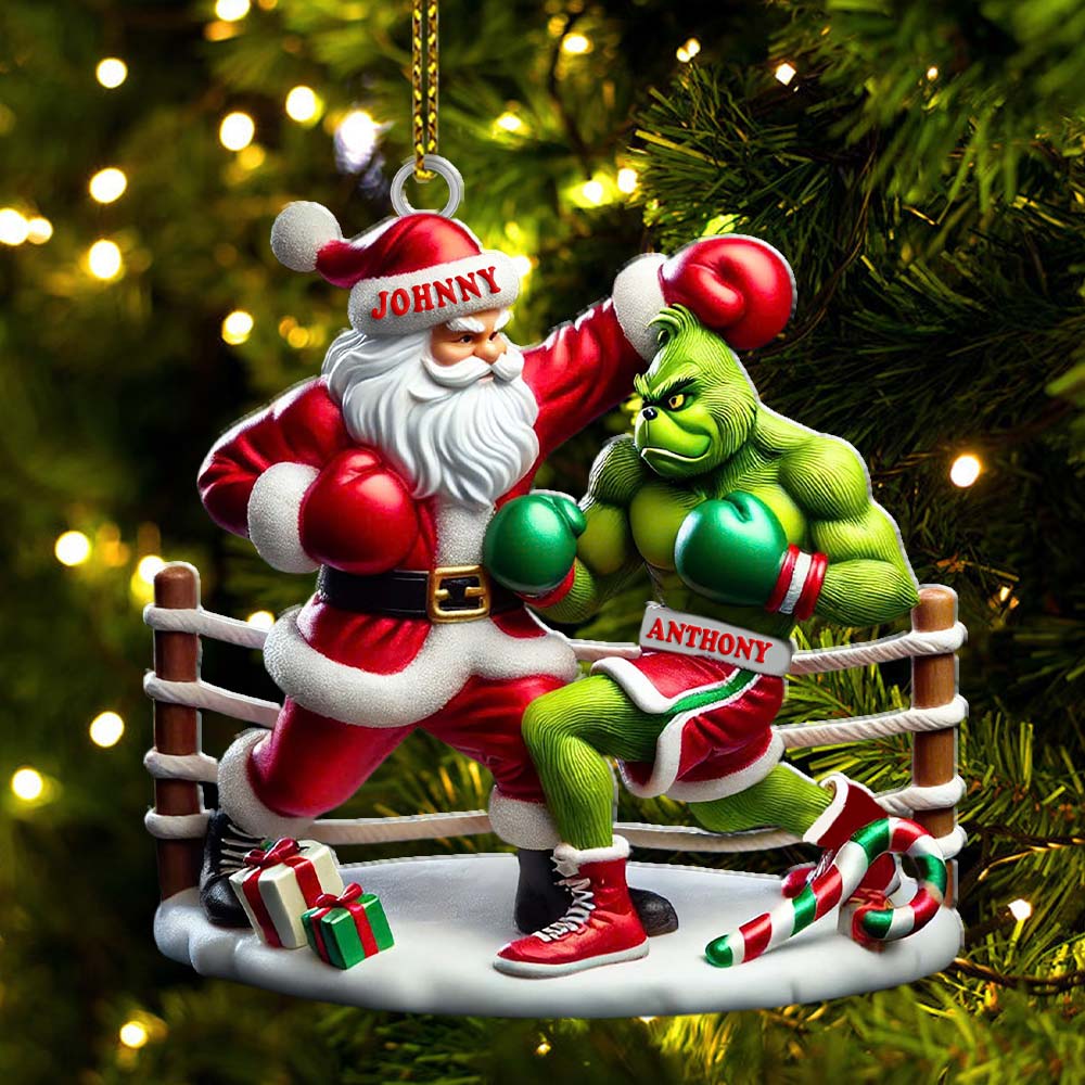 Custom Name Santa and Grinch Boxing Ornament, Boxing Christmas Gift Decoration