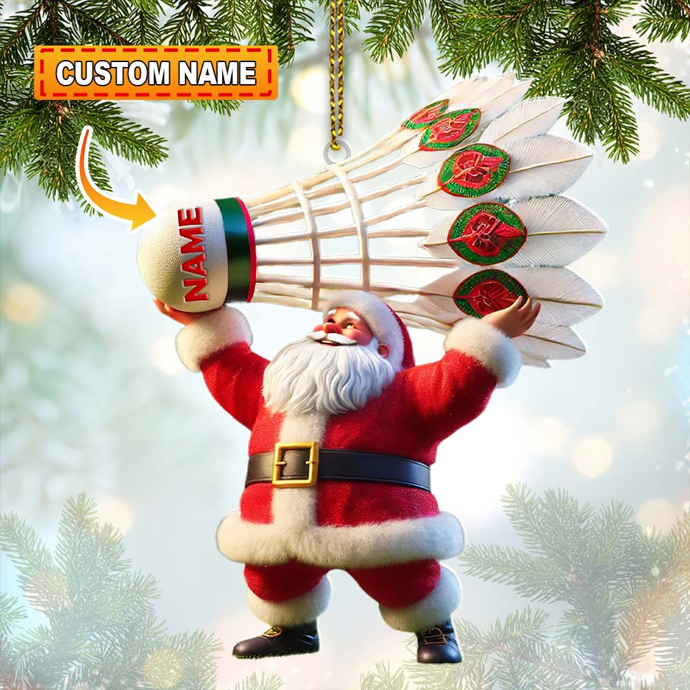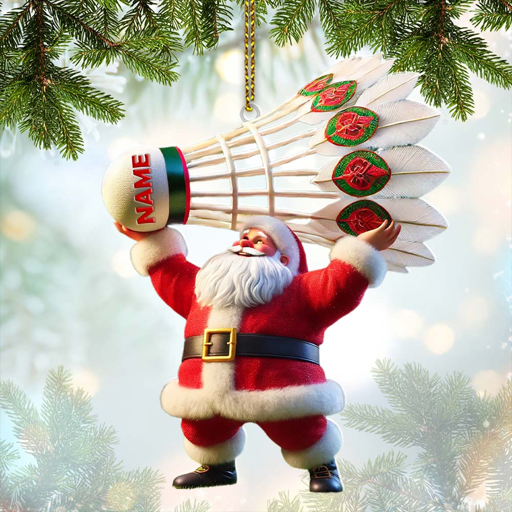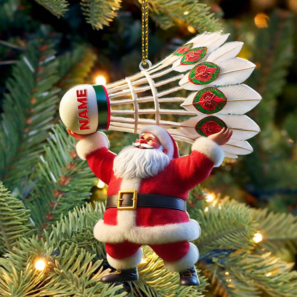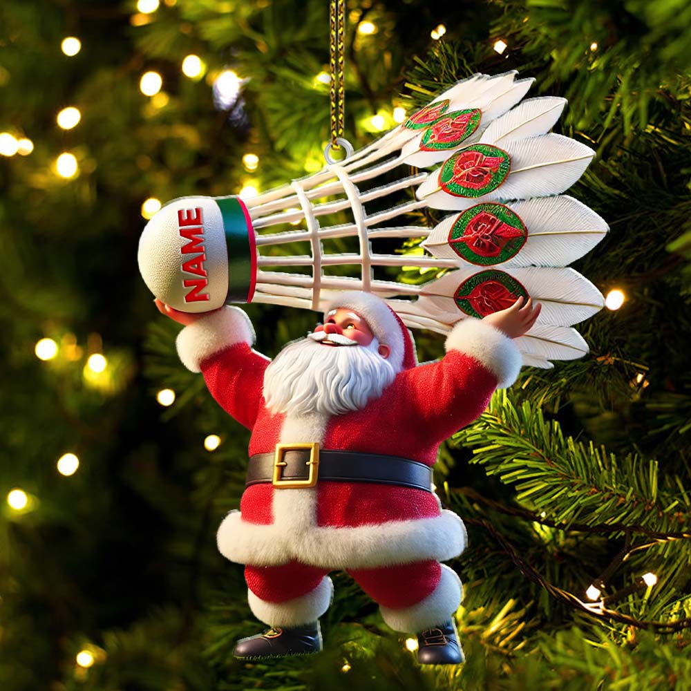 Custom Name Santa Badminton Ornament, Christmas Gift for Badminton Lover