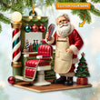 Custom Name Santa Barber Ornament, Christmas Decoration for Barber Shop