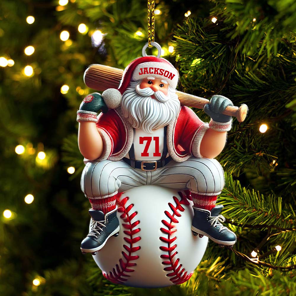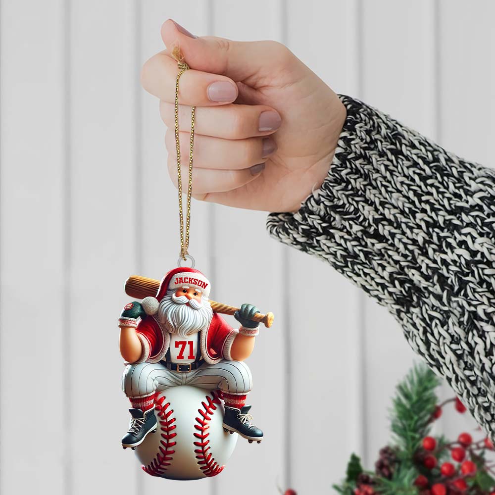 Custom Name Santa Baseball Ornament, Baseball Christmas Gift