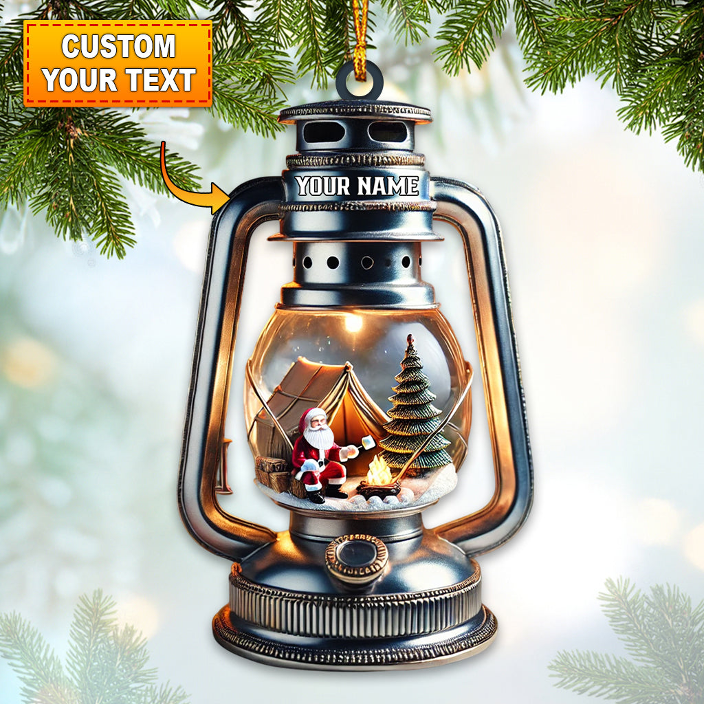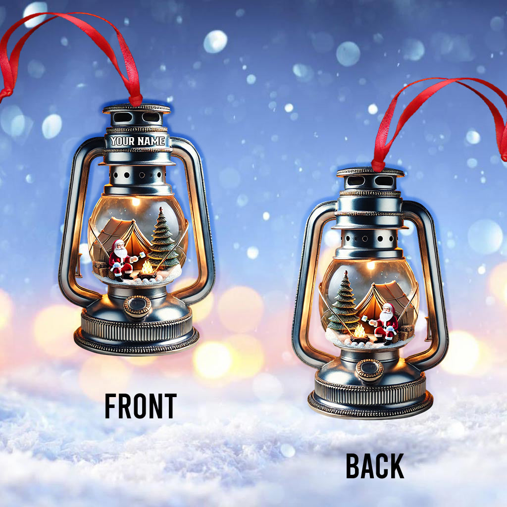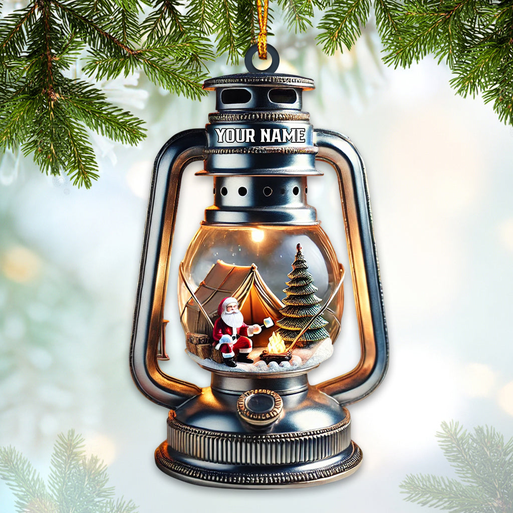 Custom Name Santa Camping Fire Ornament, Camping Lover Christmas Gift
