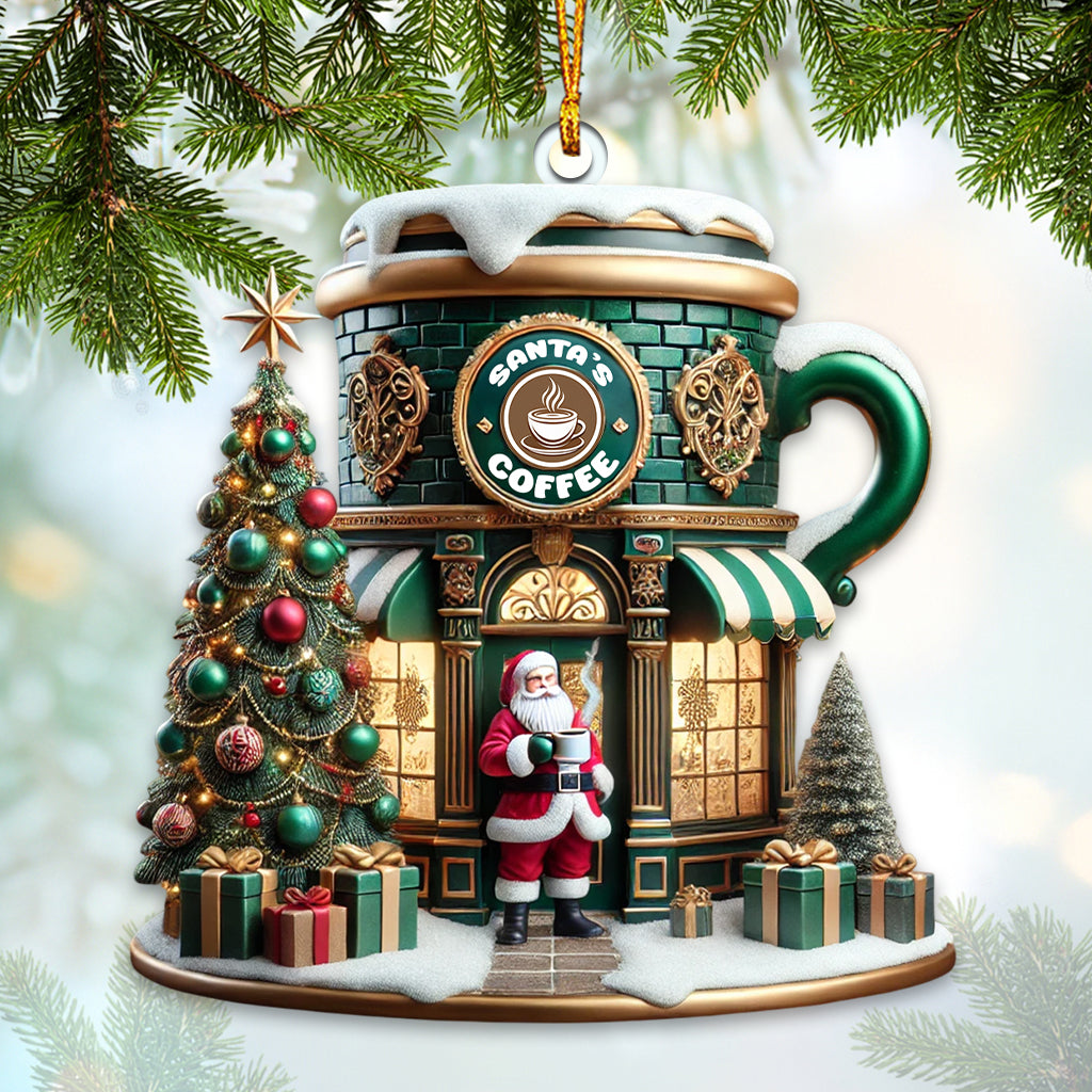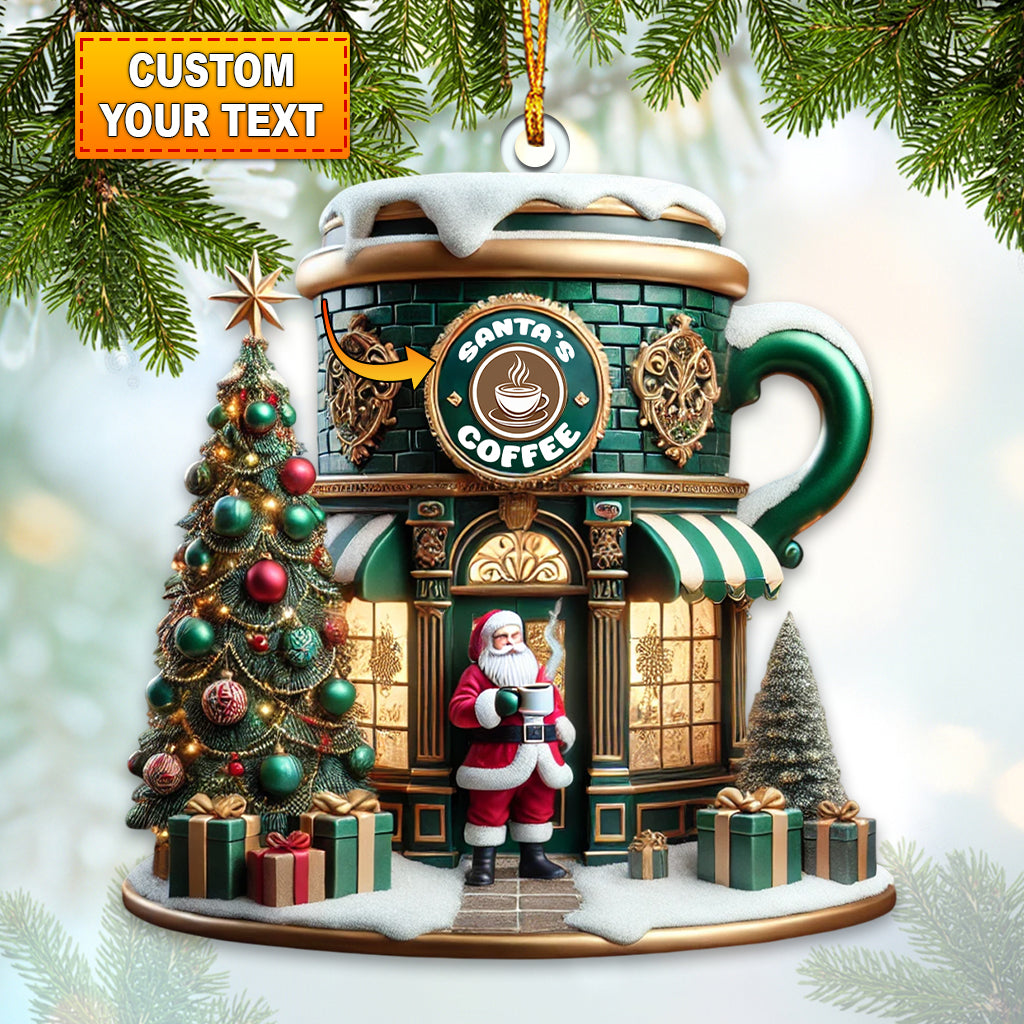 Custom Name Santa Coffee Shop Ornament, Coffee Shop Christmas Decoration