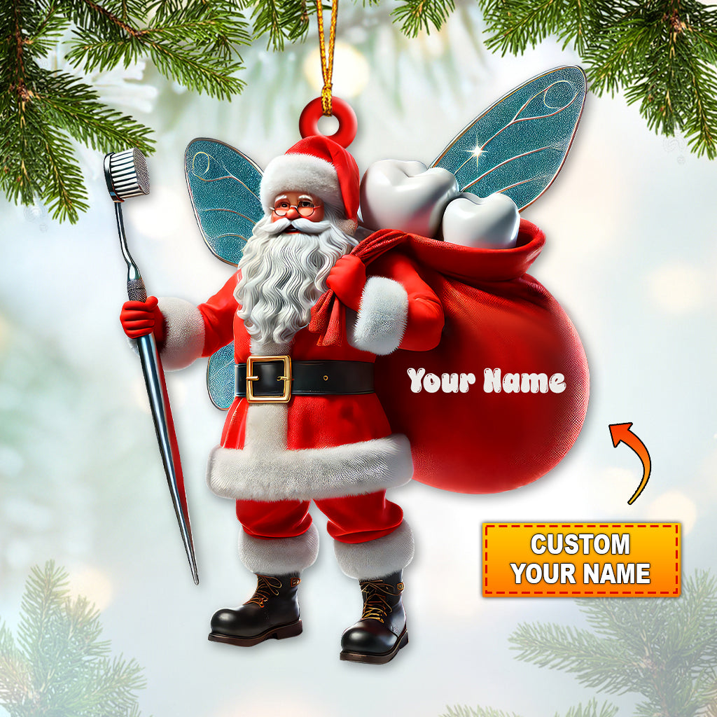 Custom Name Santa Dentist Ornament, Dentist Christmas Gift