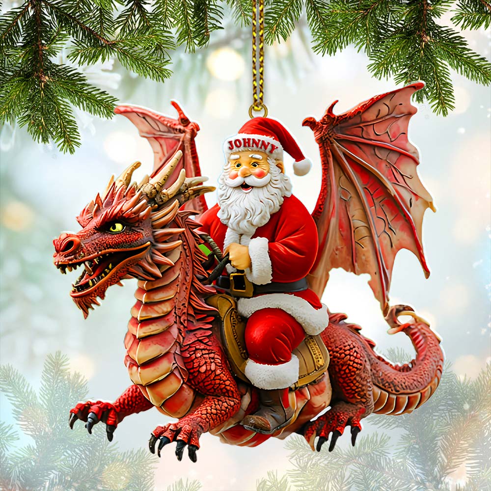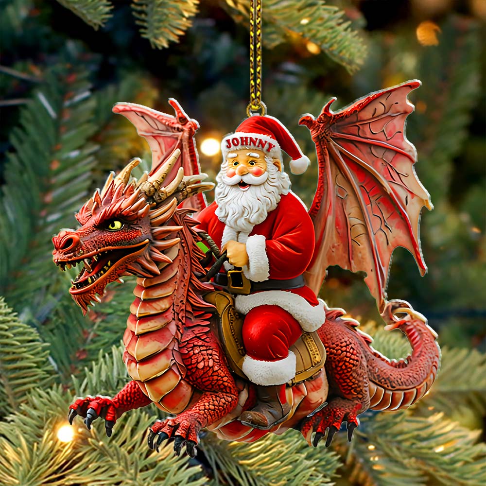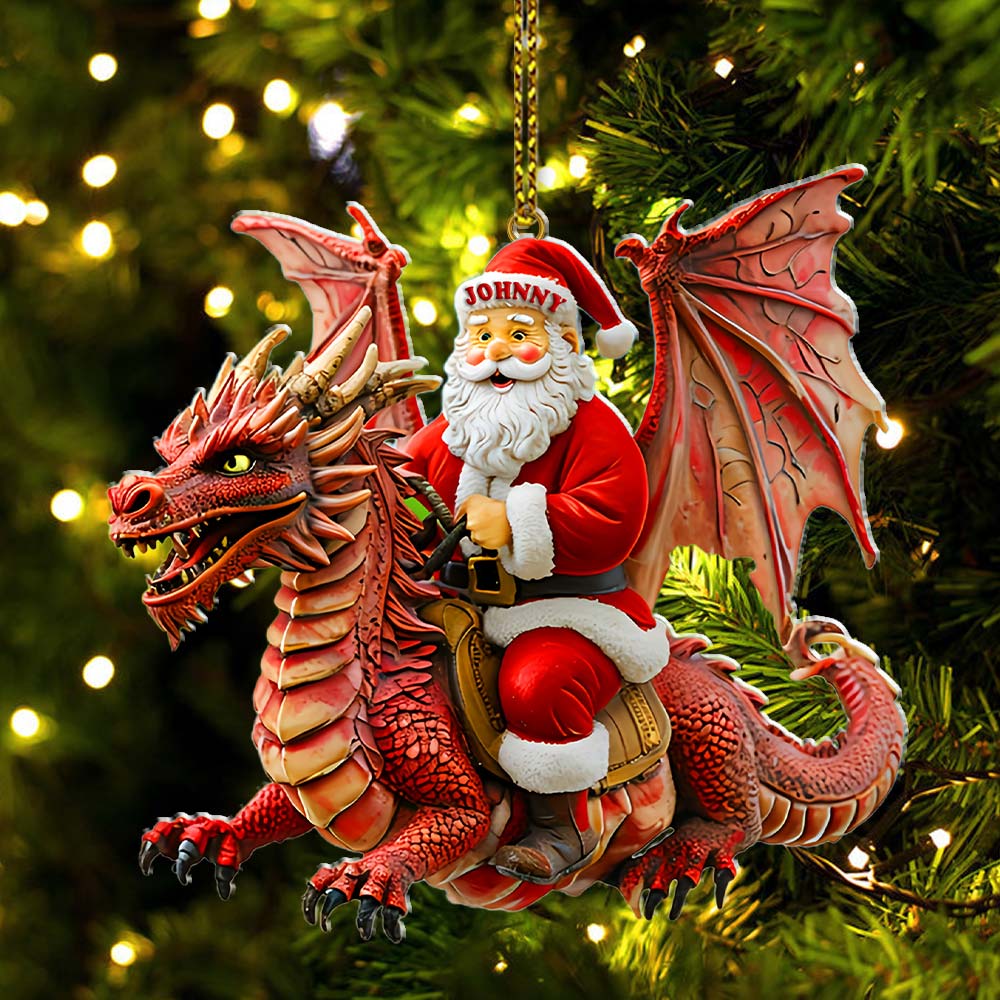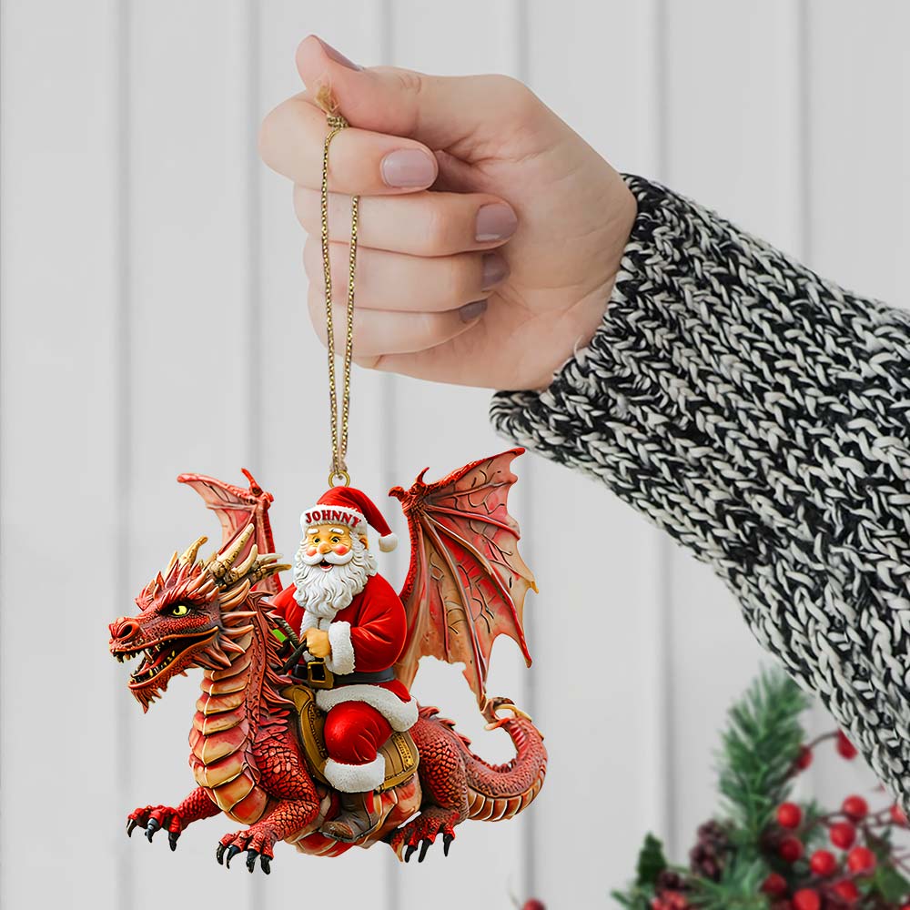 Custom Name Santa Dragon Ornament, Christmas Gift for Dragon Lover