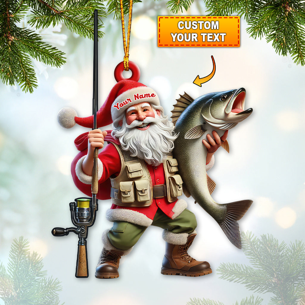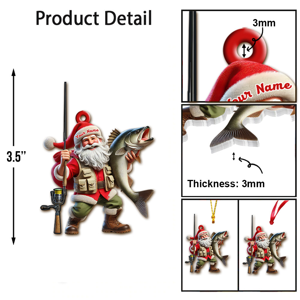 Custom Name Santa Fishing Ornament, Fishing Lover Christmas Gift