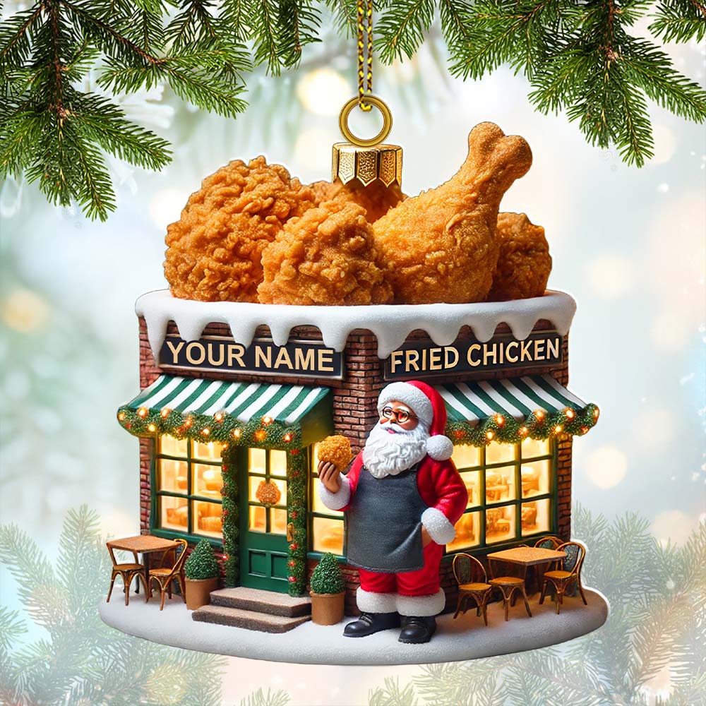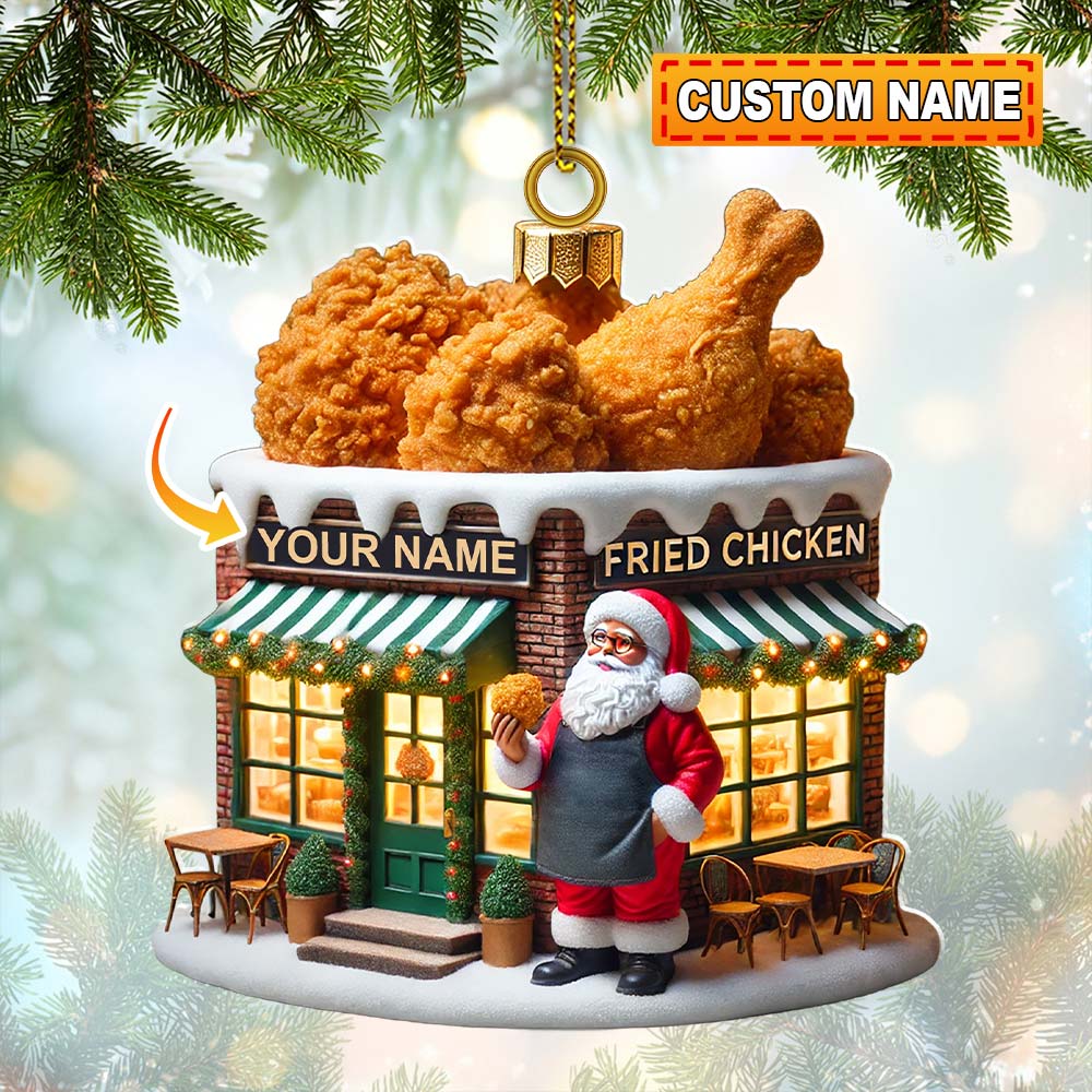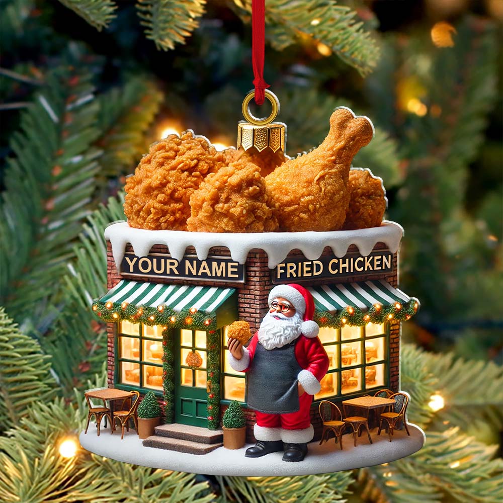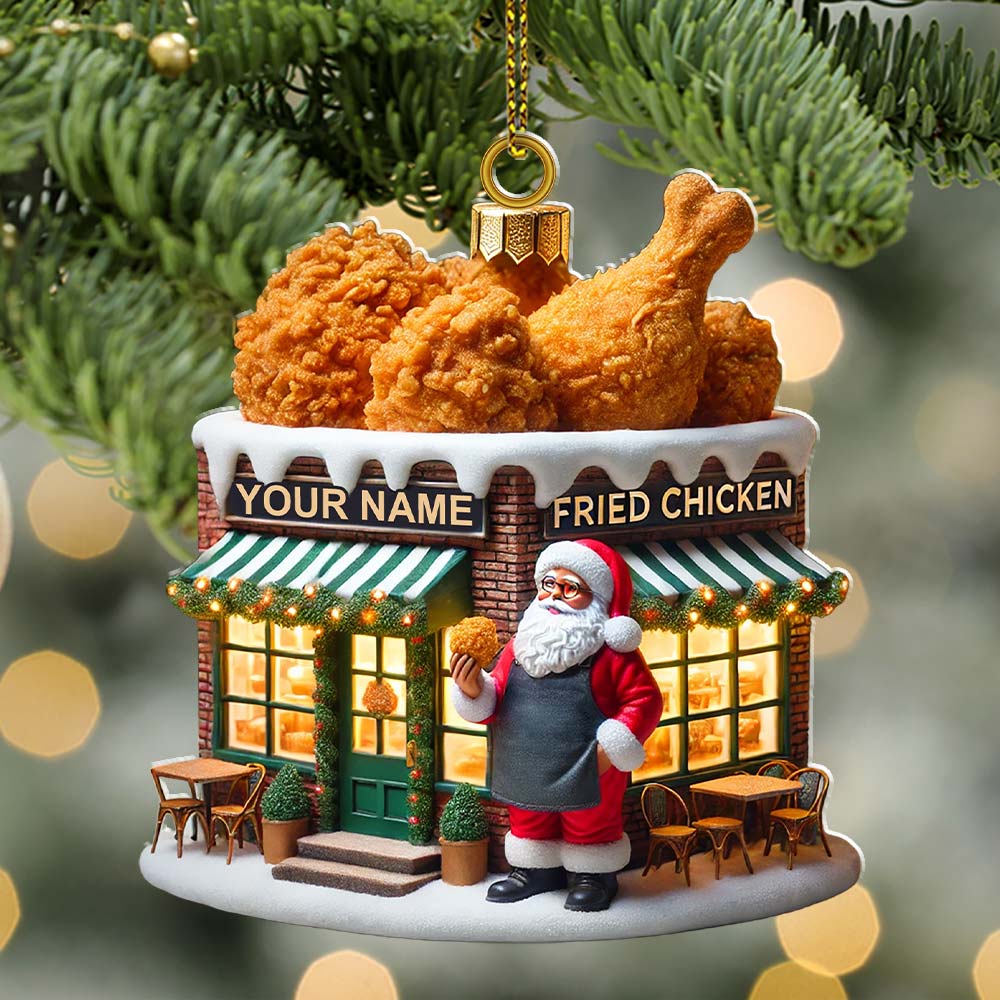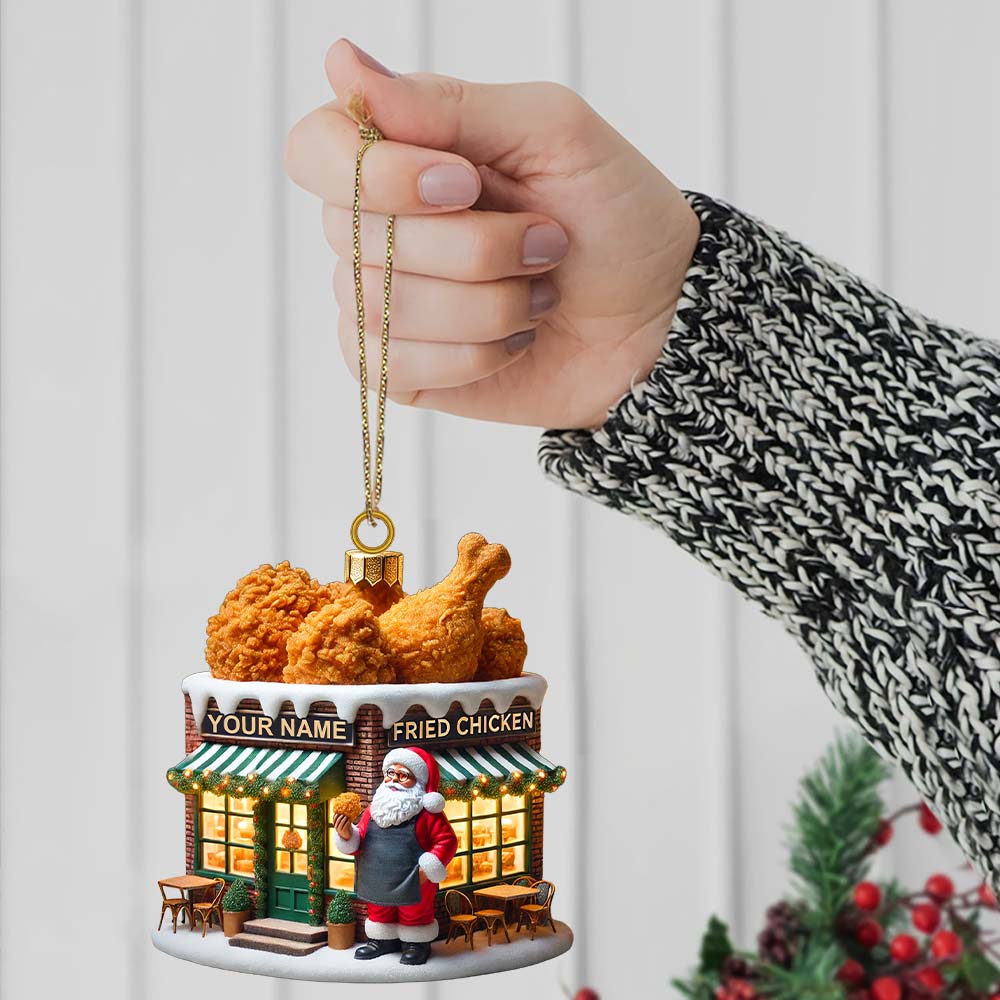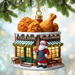 Custom Name Santa Fried Chicken Ornament, Fried Chicken Shop Christmas Decoration