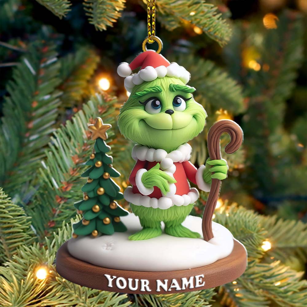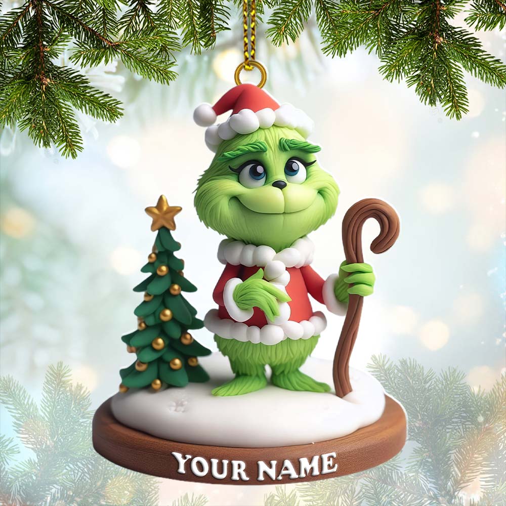 Custom Name Santa Grinch Ornament, Grinch Ornament Christmas Decoration