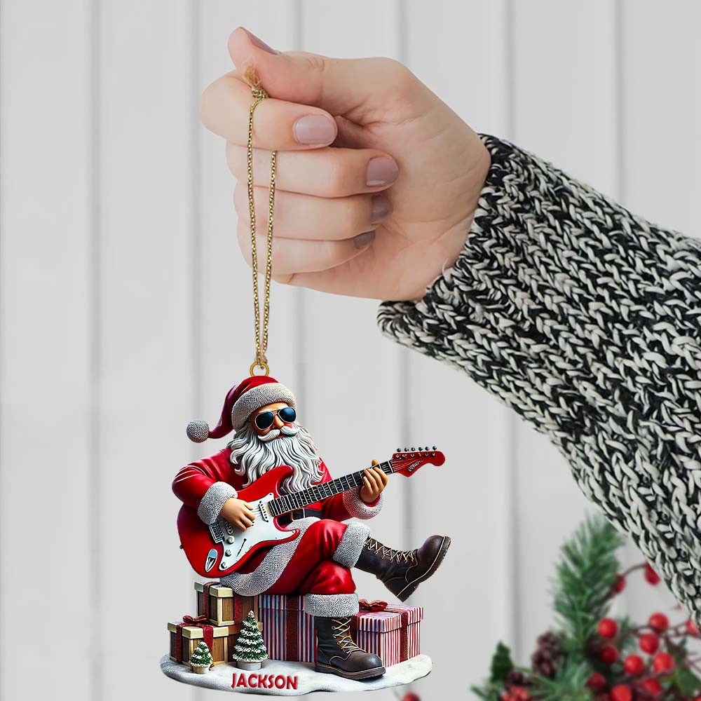 Custom Name Santa Guitar Rock Ornament, Santa Christmas Gift