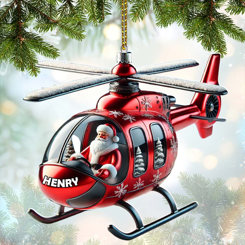 Custom Name Santa Helicopter Ornament, Santa Christmas Gift