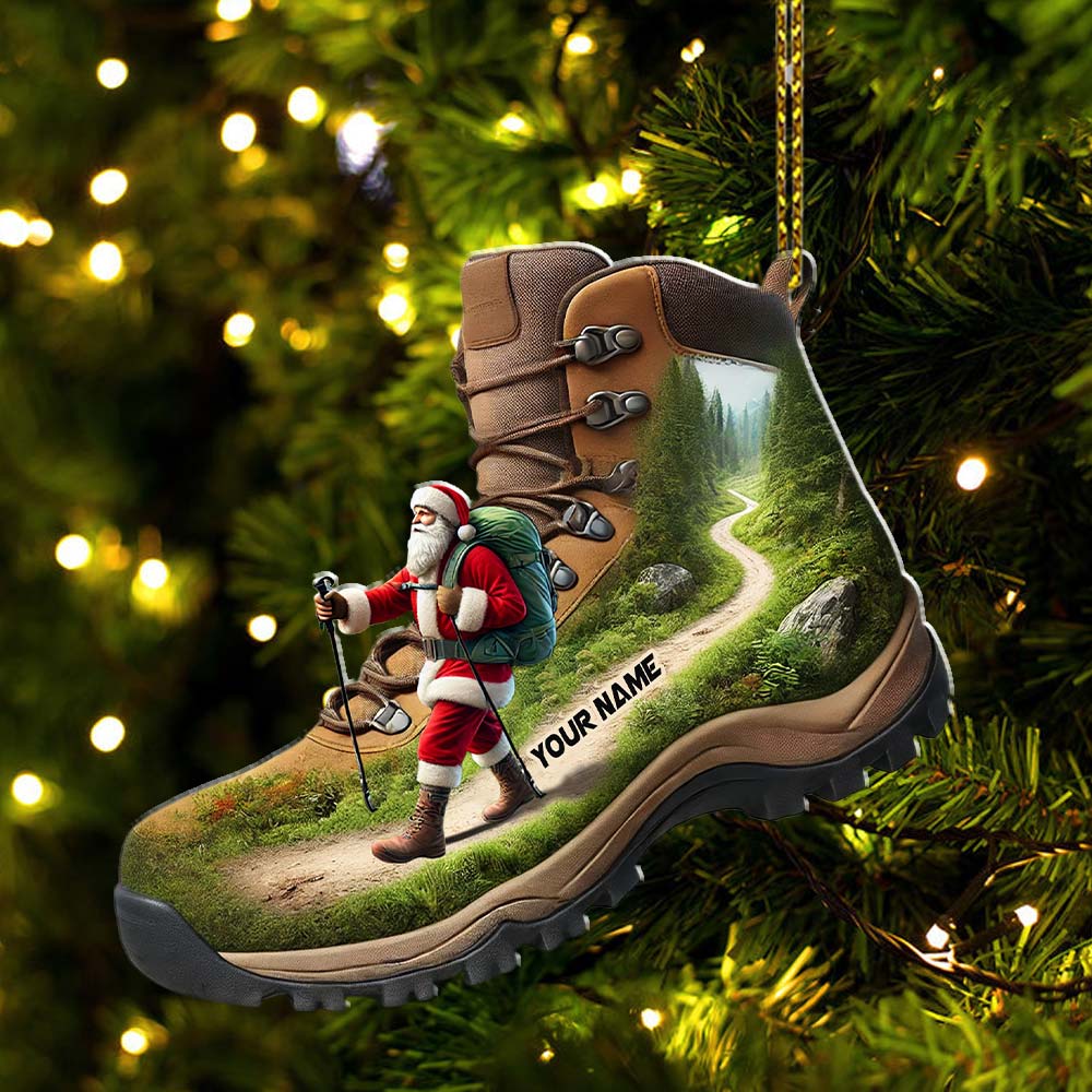 Custom Name Santa Hiking Ornament, Hiking Lover Christmas Gift